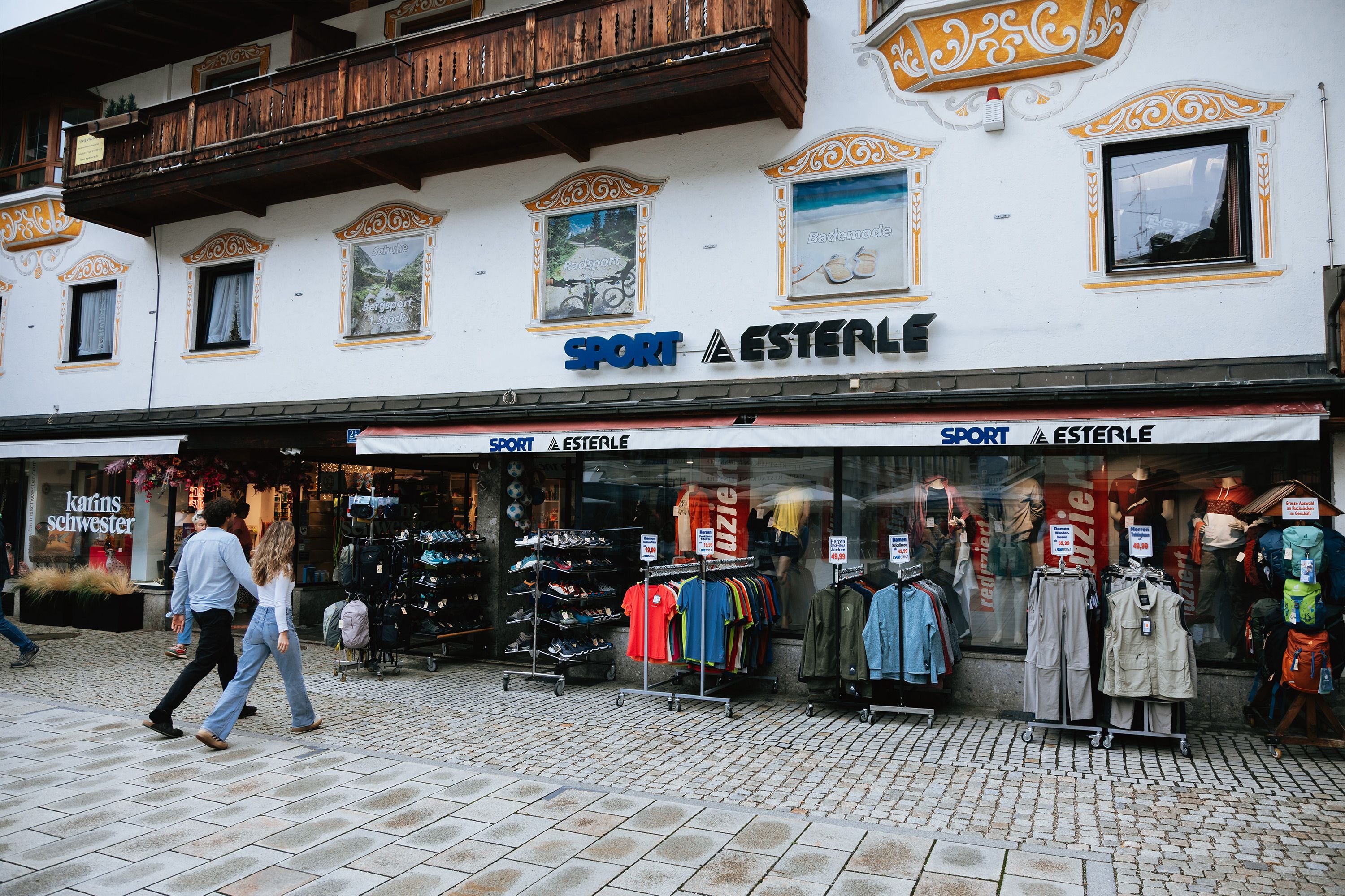 Im Zentrum von Berchtesgaden, direkt in der Fußgängerzone, erwartet dich das traditionsreiche Sportgeschäft Esterle. Auf vier Etagen mit 650 Quadratmetern Verkaufsfläche findest du eine eine große Auswahl an Bergsportausrüstung und Outdoorbekleidung. Und natürlich: eine individuelle Beratung!