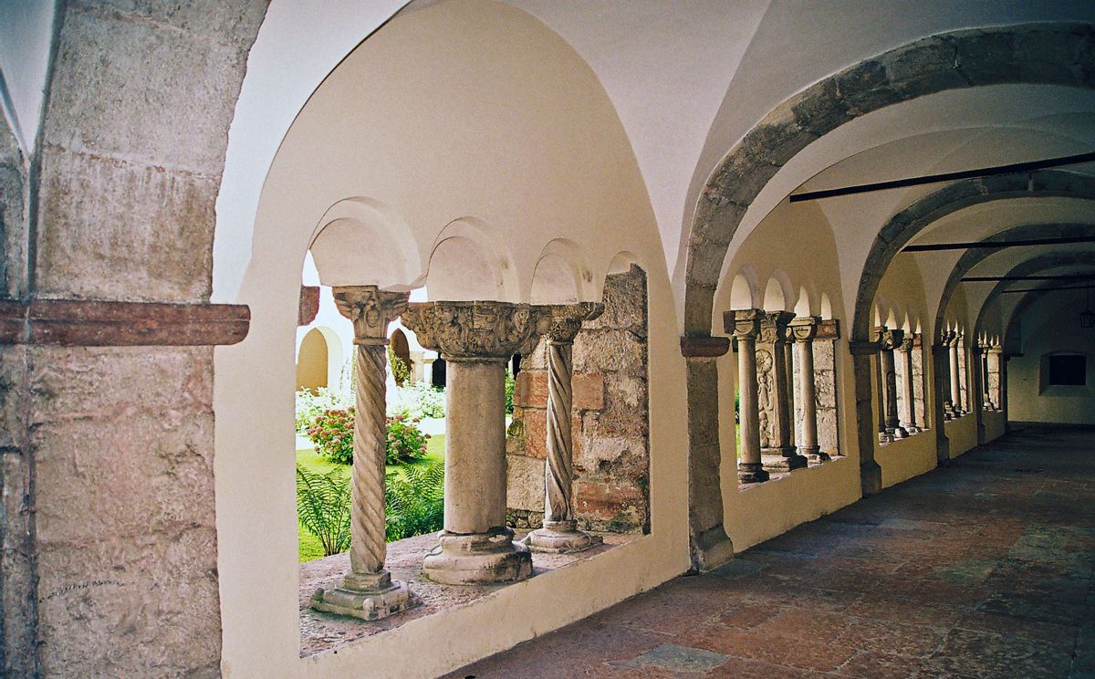 Den spätromanischen Kreuzgang, der an die Südseite der ehemaligen Klosterkirche angrenzt, betritt man heute nicht mehr von der Kirche, sondern vom Schlossplatz aus. An den Kreuzgang, dem Herzstück der Klosteranlage angeschlossen und von ihm aus zu erreichen waren die verschiedenen Gemeinschafts- und Aufenthaltsräume des Stiftes sowie die Kirche. Chorherren und dem Stift nahestehende Personen wurden hier beigesetzt, wovon zahlreiche Grabsteine heute noch zeugen.