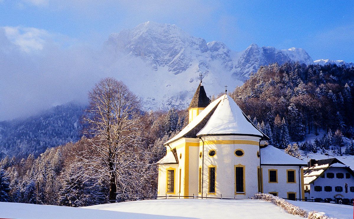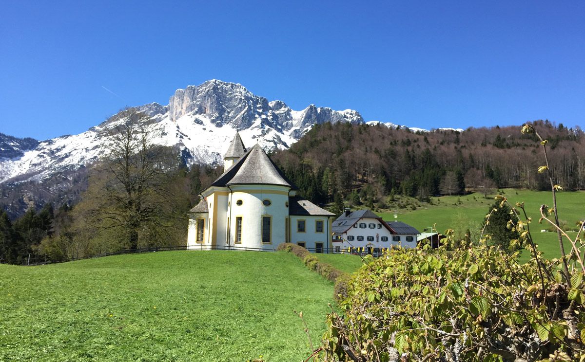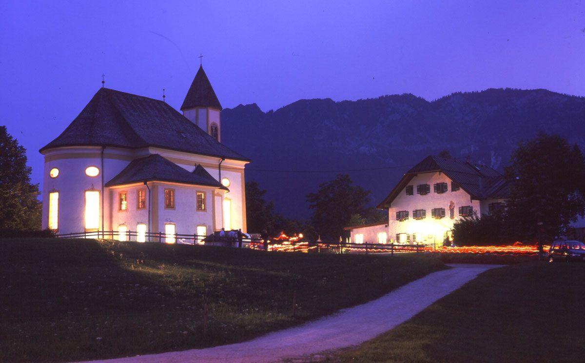 Hoch über dem Dorf Marktschellenberg liegt der Ortsteil Ettenberg am Fuße des sagenumwobenen Untersberges. Die Wallfahrtskirche Maria Heimsuchung und der danebenliegende Mesnerwirt sind ein typisch bayerisches Ensemble von Kirche und Wirtshaus.