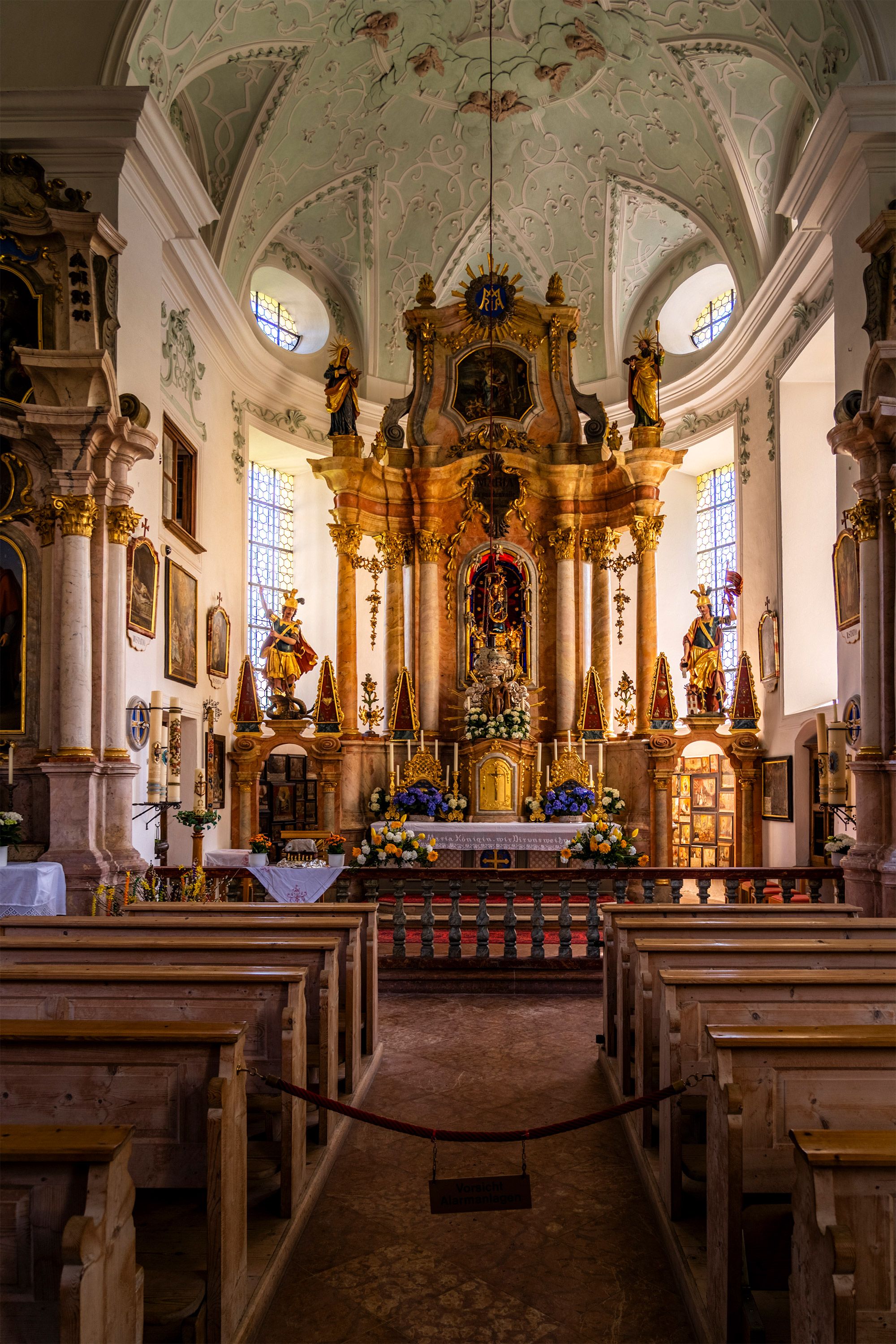Durch Portale, die den Hochaltar mit der Chorwand verbinden, kann das Gnadenbild umschreitet werden, vorbei an zahlreichen Votivtafeln. Die Darstellungen zeigen wundersame Errettungen aus Notsituationen mit erklärenden Texten sowie dem Zusatz ex voto (wegen eines Gelübdes). Bevor der Gläubige das Gotteshaus verlässt, fällt sein Blick auf die monumentale Holzfigur des heiligen Christophorus. Der sogenannte Christusträger befindet sich auf der Orgelempore. Als einer der Vierzehn Nothelfer ist er heute besonders bekannt als Schutzheiliger der Reisenden.