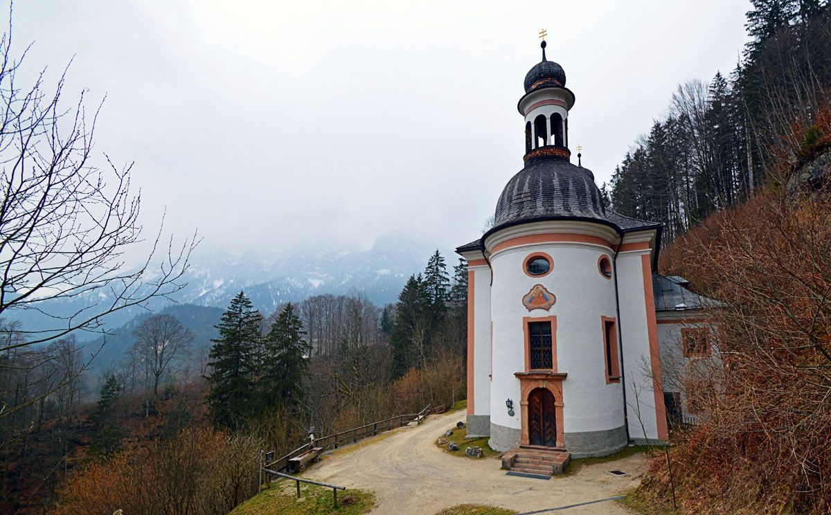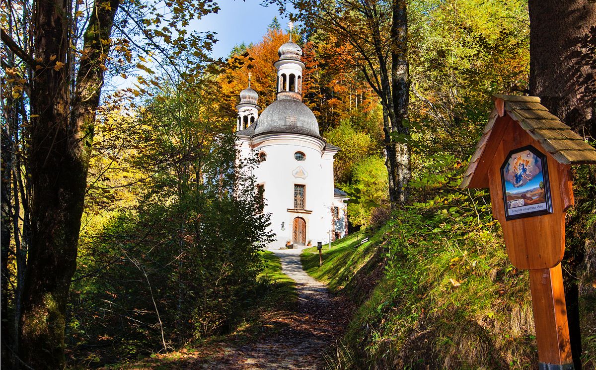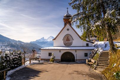 Die Wallfahrtskirche Maria Himmelfahrt am Kunterweg ist ein echtes heiliges Kleinod im Bergsteigerdorf Ramsau. Über den schönen Kunterweg ist sie auf einem kurzen Spaziergang erreichbar.
