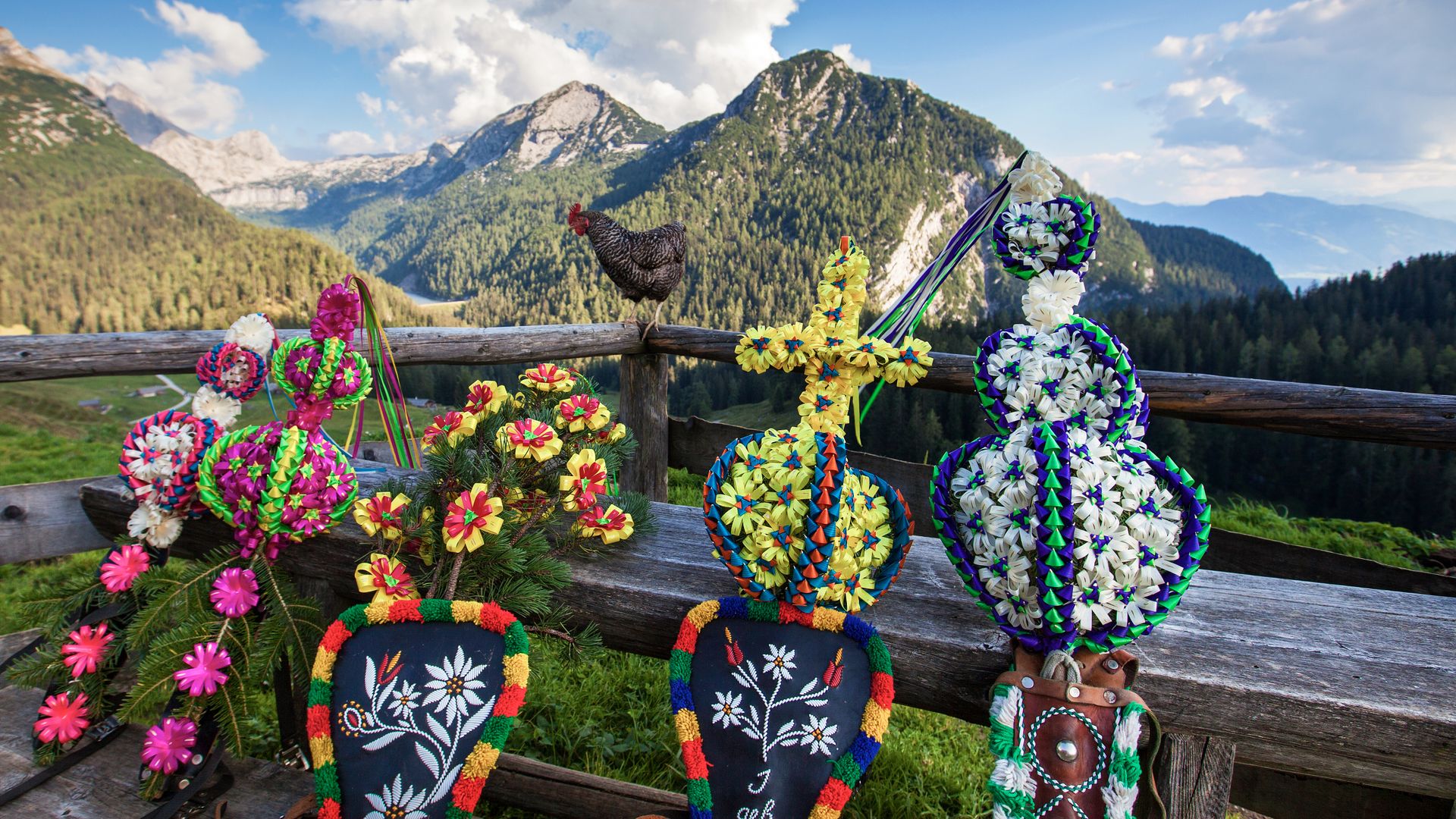 Der traditionelle Kopfschmuck der Tiere zum AlmabtriebDer 24. August ist für die Almbauern in Berchtesgaden ein ganz besonderer Tag. Ab diesem Zeitpunkt, dem Bartholomäus-Tag, darf nach alter Gewohnheit mit dem “Kranzen” begonnen werden – also mit dem Anfertigen des Kopfschmucks der Tiere für den Almabtrieb. Dieser Tag verkündet damit auch das nahende Ende des Almsommers: Die Kühe bleiben ab diesem Zeitpunkt noch zwischen zwei und sechs Wochen auf den Almen.