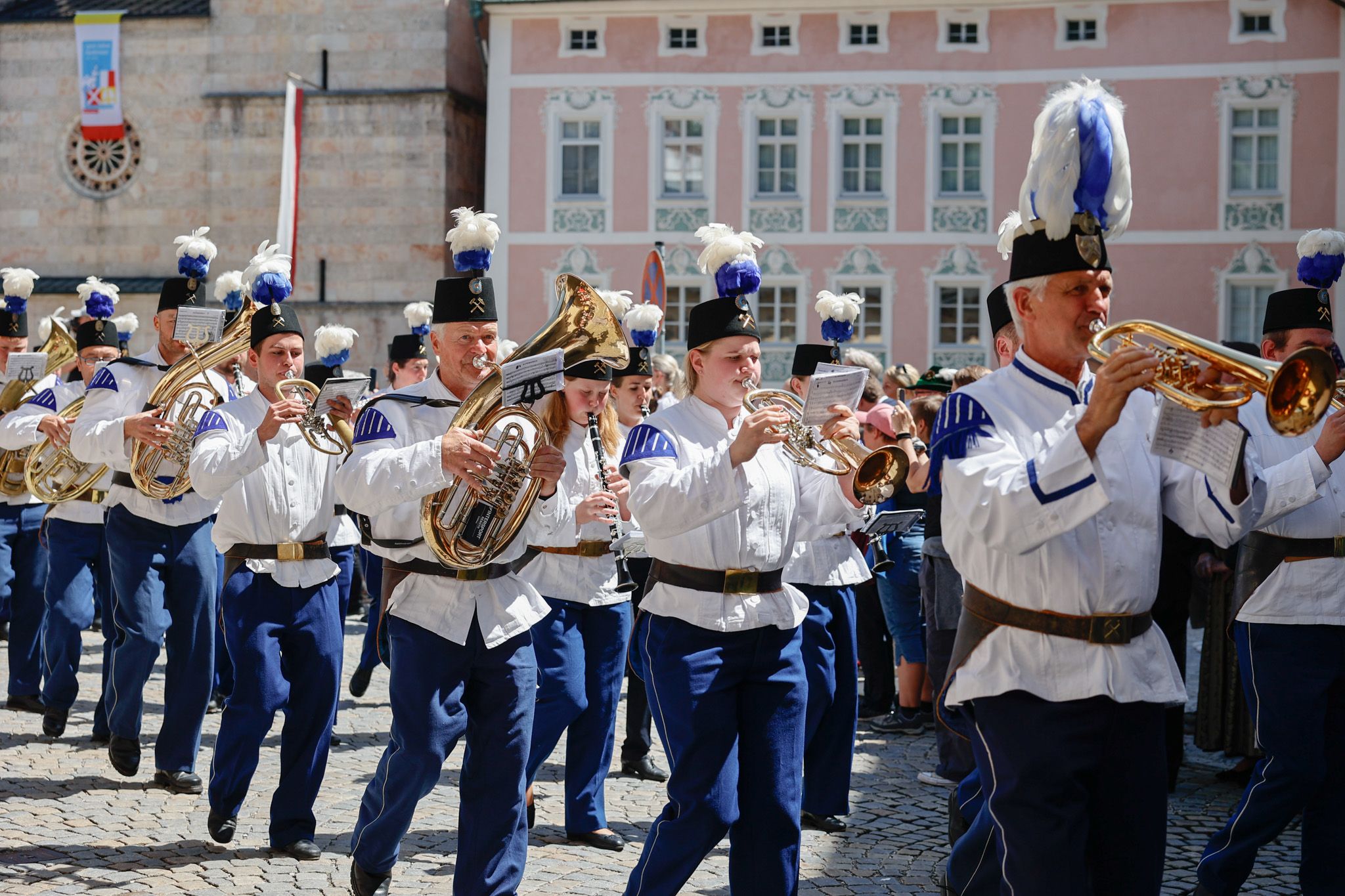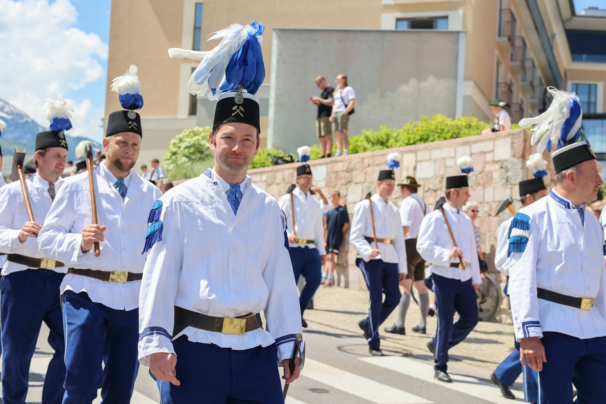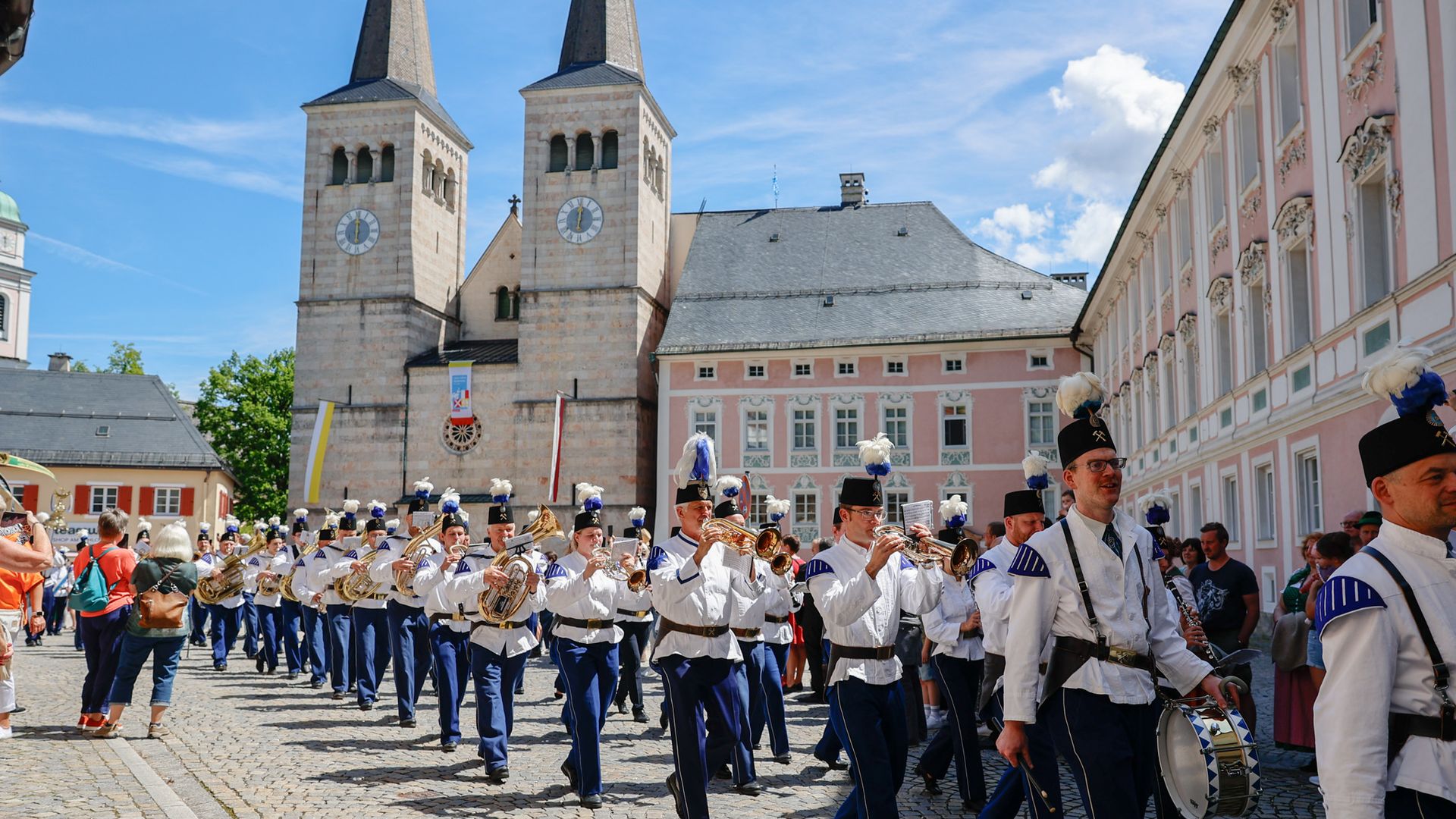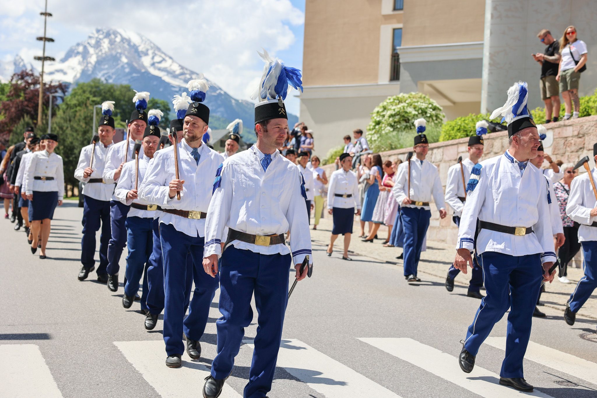 Das Bergfest an PfingstenMit einem Konzert der Knappschaftskapelle am Schlossplatz und einem Festzug durch den Markt Berchtesgaden wird am Pfingstsonntag das Fest eingeläutet. Am Pfingstmontag, dem eigentlichen Festtag, geht es früh morgens wieder musikalisch los mit einem Weckruf der Kapelle der Bergknappen und Festzug im Markt Berchtesgaden. Die anschließende Einfahrt in das Salzbergwerk mit Festakt bleibt den Bergmännern vorbehalten. Ein großer Festzug macht sich danach auf zum Marsch zur Stiftskirche. Nach dem Lob- und Dankgottesdienst, ziehen die Knappen und Musiker weiter durch den Markt Berchtesgaden. Schön anzusehen sind die Bergmänner in ihrer Tracht. Sie tragen ihre Werkzeuge wie Bergeisen, Schlägel, Horn, Häckel und Bergbarte. Der dienstälteste Bergmann schultert das Zunftzeichen der Bergleute, das "Bergmanndl".