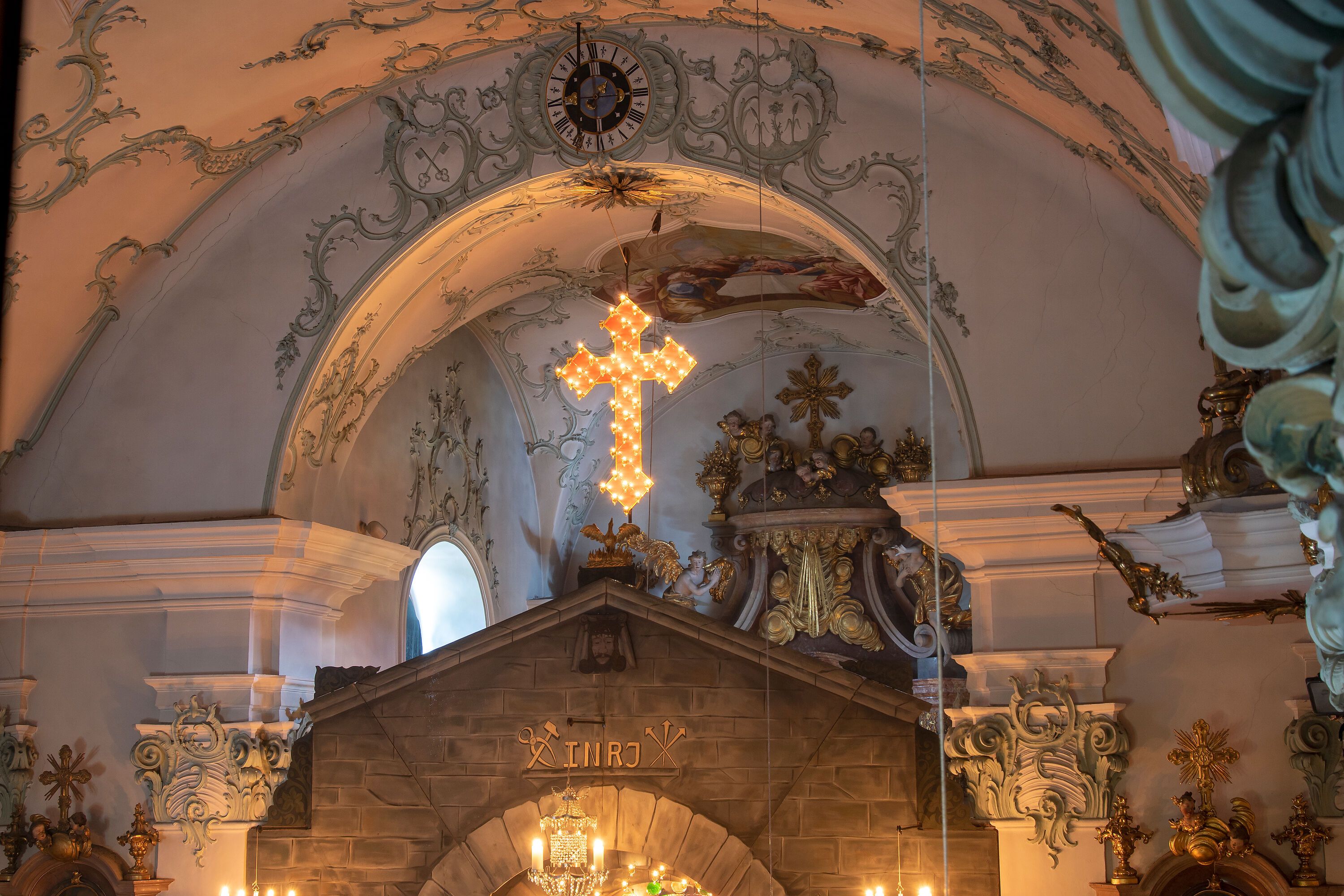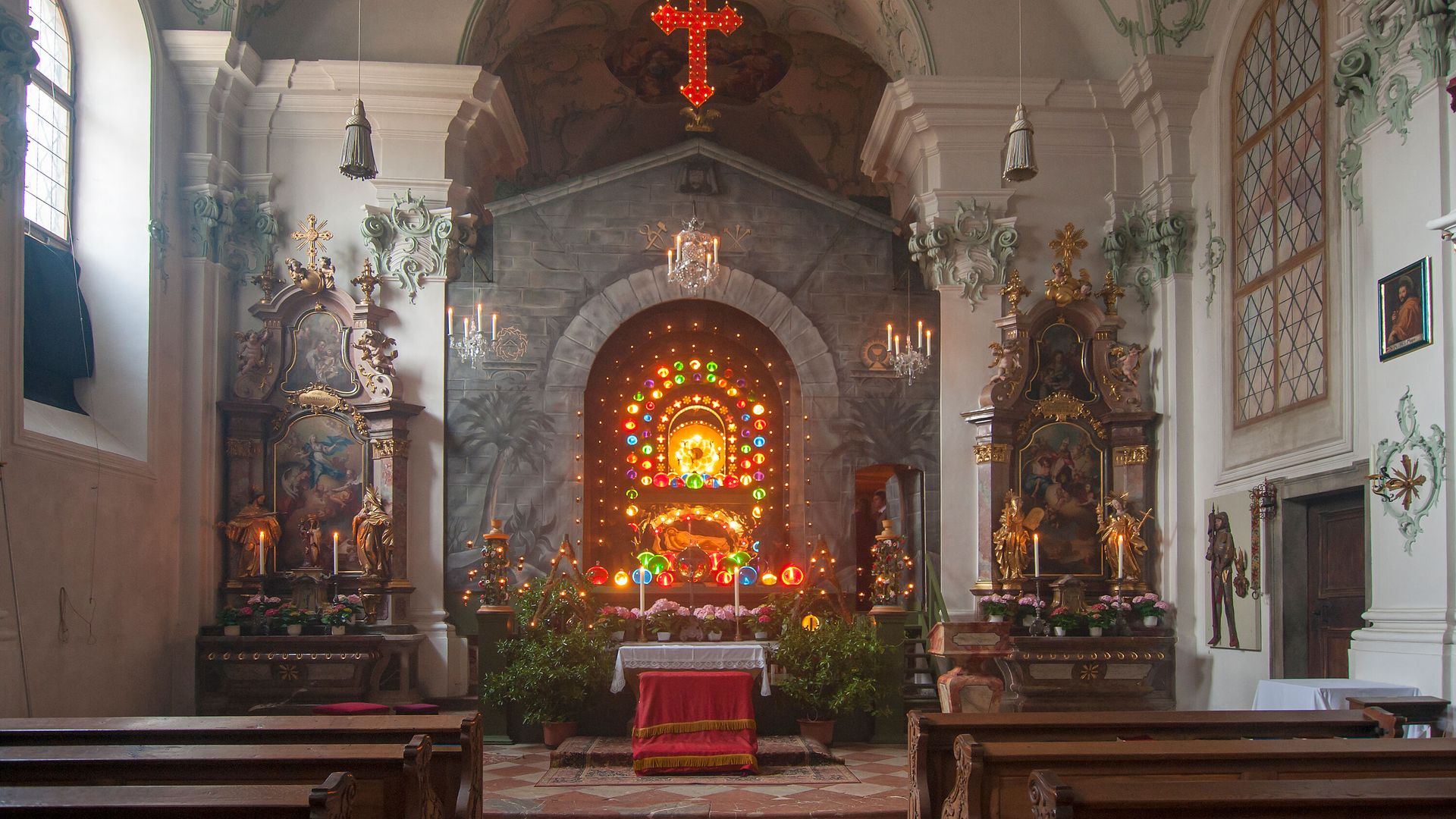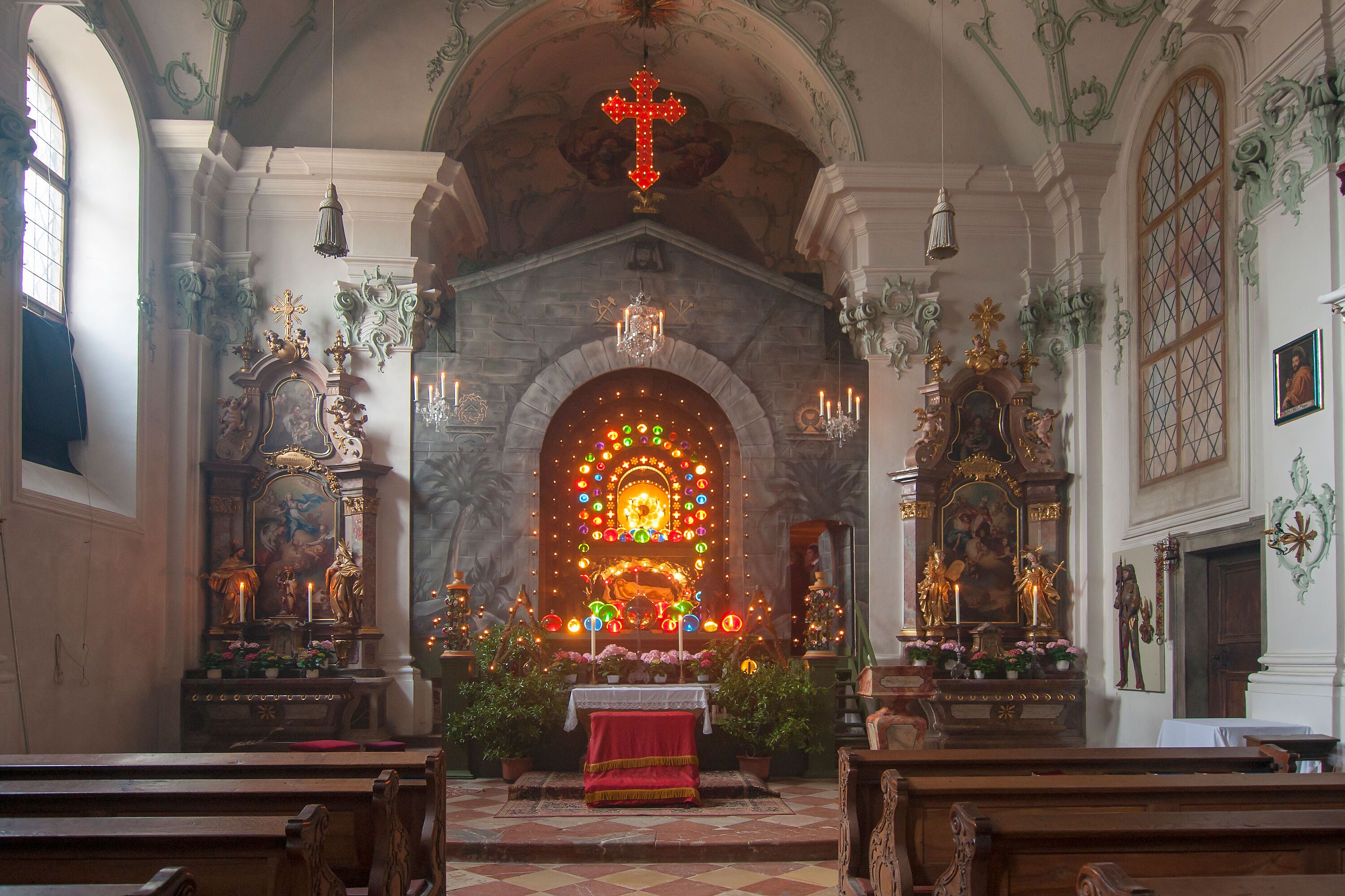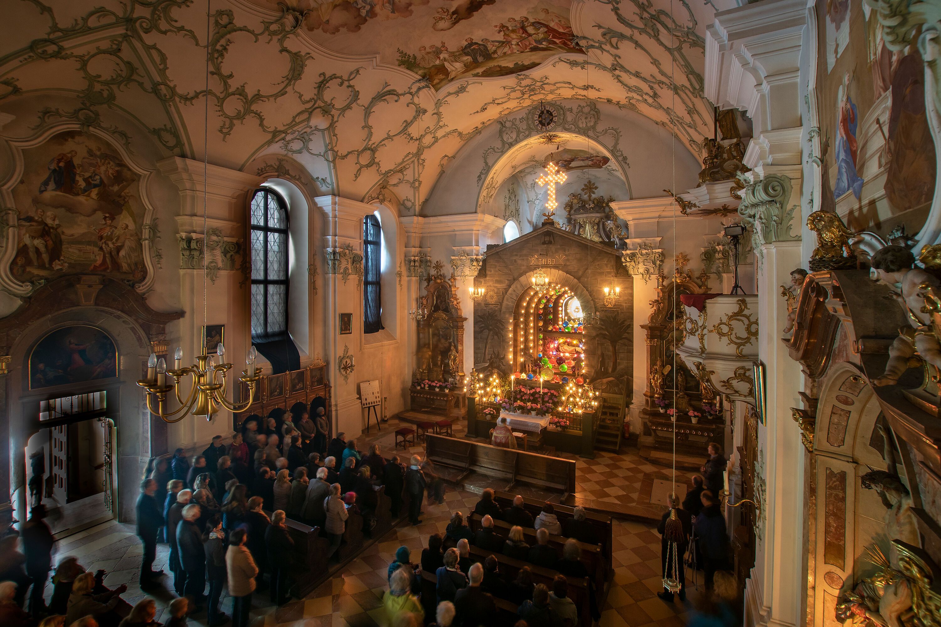 in der Klosterkirche von HöglwörthHöglwörth – bis zur Auflösung des Klosters 1817 ein Augustinerchorherrnstift – liegt als wunderbare Klosterkirche in der Pfarrei Anger im Rupertiwinkel des Berchtesgadener Landes. In dieser Kirche stellen in der Karwoche im Turnus von 3 Jahren die Bewohner des Ortsteils Höglwörth „ihr“ Heiliges Grab auf – zu sehen dann jeweils am Karfreitag und Karsamstag.