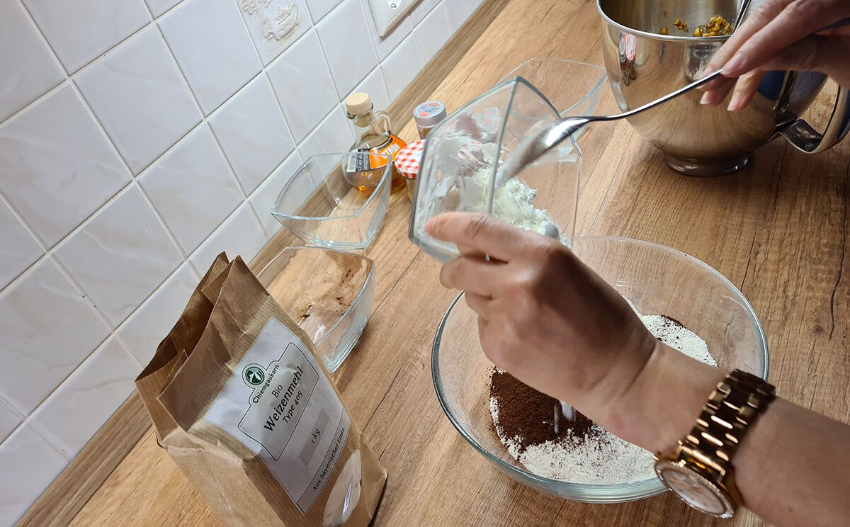 Ein Blick auf die Uhr beendet die Küchenzeit. Jetzt eilt es, den Nachwuchs abzuholen. “Natürlich back‘ ich das Früchtebrot auch für heimisch & fair. Wer Glück hat, ergattert eins am Markt”, grinst Katrin und zieht ihren Mantel an.
