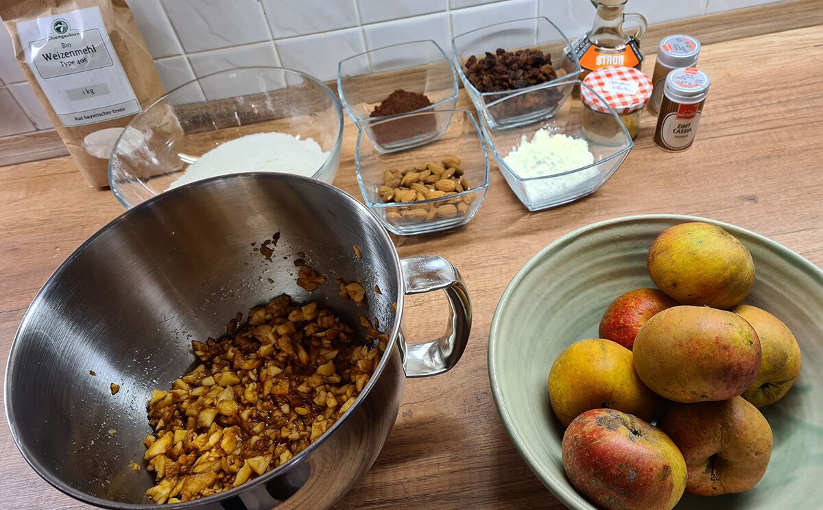 Für das Früchtebrot verwende ich gute regionale Zutaten, wie das Mehl und die Äpfel. Es geht super einfach und ist ideal für die Adventszeit.
