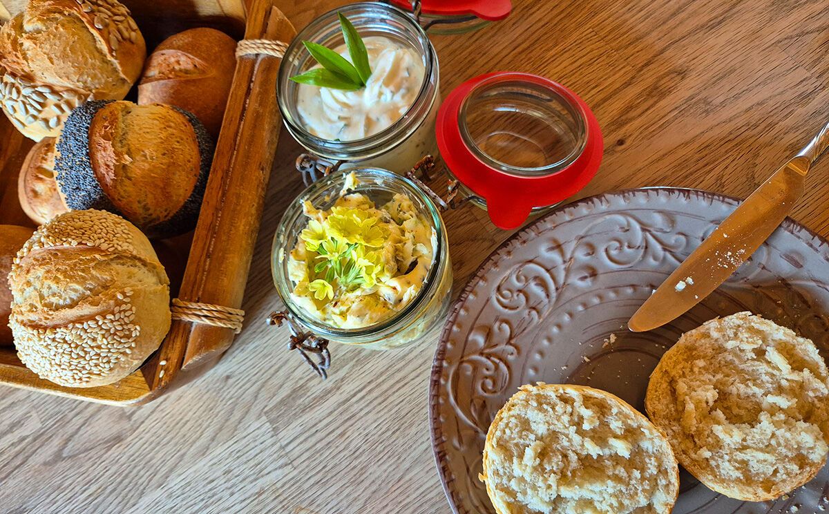 Wenn Berchtesgaden aufblüht, nutzen wir Knospen, Blüten und junge Triebe für unser Essen, um von der Kraft der Natur zu profitieren. Kommen Sie mit, auf eine geführte Kräuterwanderung oder machen Sie bei einem meiner Seminare mit! Oder überraschen Sie Ihre Lieben daheim mit meinem Frühlingsbrunch – selbstgemachten Kräuterzauber-Semmerl mit Blüten-Chilli-Butter und Bärlauchquark – ein Frühlingsfest am Morgen.