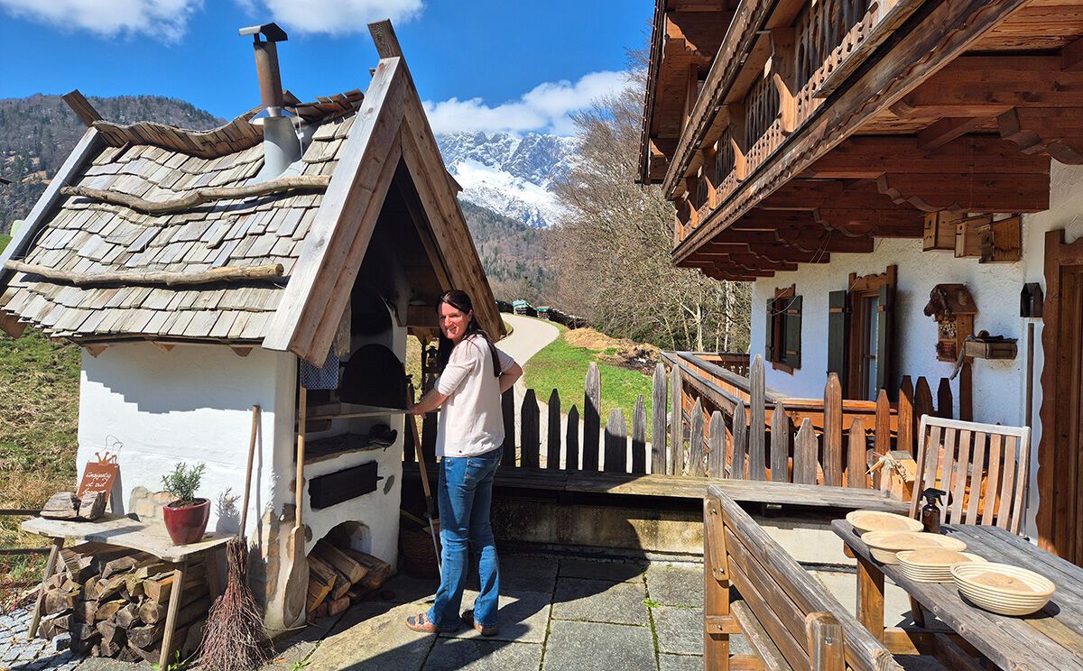 Wer bei Monika Angerer in Marktschellenberg zu Besuch sein darf, hat wahlweise das Gefühl bei Otfried Preußlers „Die kleine Hexe“ oder im hochpreisigen Deluxe-Biohotel gelandet zu sein. Der Brotbackofen vor dem Haus ist ihr ganzer Stolz. Den hat ihr Neffe gebaut. Ein absolutes Unikum, gewollt schief und krumm, mit Fenstergaube und Schornstein, wie ein Kräuter-Hexenhäuschen in Miniaturformat. Die Einrichtung in Monikas Wohnung variiert von antiken Elementen, wie alten Kaffeemühlen und Kupfertöpfen, einer Singer-Nähmaschine und Hängeschränkchen aus Altholz zu chicen beigen Sofas, weißen Schaffellen und Edelstahl-Elementen rund um den Holzofen in der Küche. Dicke Kräuterbuschen hängen zum Trocknen an den Deckenbalken aus Naturholz und in zahllosen Einmachgläsern und Fläschchen konservieren Knospen, Pflanzenteile und Früchte.