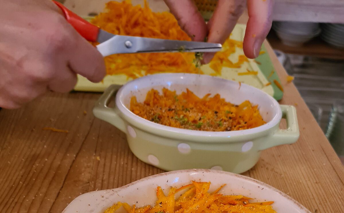 Dass gesunde und schmackhafte Gerichte aus biologisch angebauten und regionalen Produkten den Löwenanteil an einem lebenswerten Leben ausmachen, da sind sich die Damen Kurz sicher. „Gerade vor dem Winter müssen wir unserem Körper und unseren Sinnen Gutes tun: “Volle Farben, viele Vitamine, vollwertige Rezepte, lebhafte Gewürze”, fasst Gabi zusammen und präsentiert ihr ultimatives Herbstgericht: Den Kürbisauflauf mit Chicorée-Orangen-Salat.