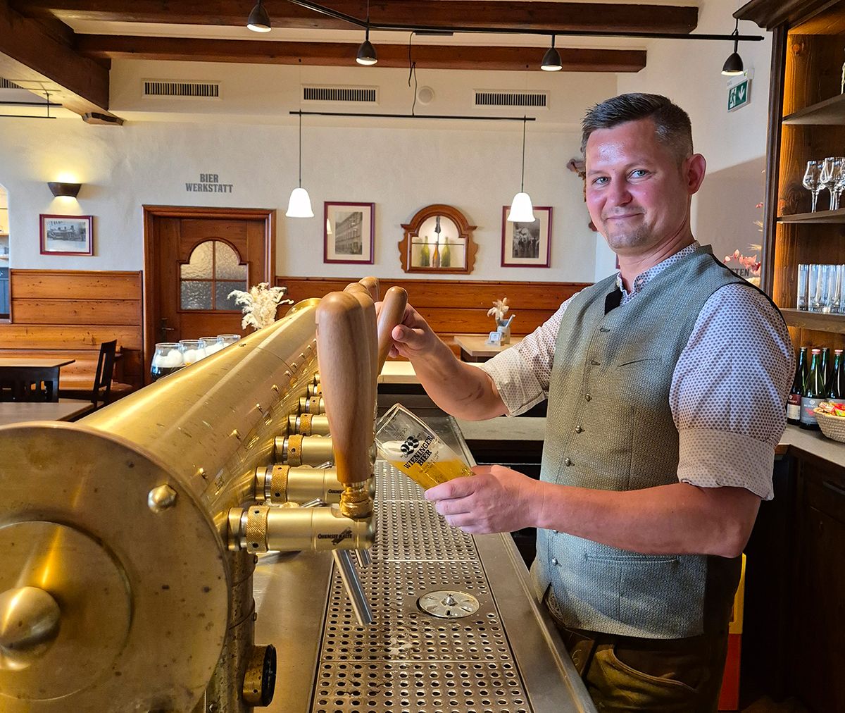 Der Wieninger Braugasthof im Herzen des Rupertiwinkels fühlt sich Marcel stark verbunden: “Eine richtige Dorfgaststätte, wie es sich traditionell für Bayern gehört.” Bierspezialitäten sind hier natürlich besonders wichtig: Traditionsbiere, Braumeisterbiere und Werkstattbiere stammen aus der benachbarten Privatbrauerei. 1580 wurde das Gebäude im Herzen des Dorfes zum ersten Mal urkundlich erwähnt. Erst als Wohnhaus eines Händlers genutzt, wird es schon 80 Jahre später seiner wahren Bestimmung zugeführt: 1661 eröffnet das Wirtshaus. Egal ob runder Geburtstag, Taufe, Hochzeit oder auch Beerdigungen: Die Alte Post begleitet die Einheimischen seit 120 Jahren an ganz normalen oder eben ganz besonderen Tagen. Aber auch Urlauber, Radlfahrer, Ausflügler und Besucher der Wieninger Biererlebnis-Tour in der direkt angrenzenden Brauerei fühlen sich in der gemütlichen Gaststube pudelwohl. “Wir wollen für alle da sein. Es gibt auf unserer Karte für jeden Geschmack genau das Richtige. Und wir achten darauf, dass unsere Preise ebenso gut verdaulich sind, wie unser Essen”, lacht Marcel. Alle Fäden laufen bei ihm zusammen. Er hilft da aus, wo Not am Mann ist. Er hat des Öfteren in der Küche ausgeholfen und es genossen, in seiner ursprünglichen Wirkungsstätte zu arbeiten. Die fehlt ihm nämlich schon ab und an, wenn er - wie hauptsächlich - im Management des Betriebs und in der Gästebetreuung unterwegs ist: “Einmal Koch, immer Koch”, schmunzelt Marcel.