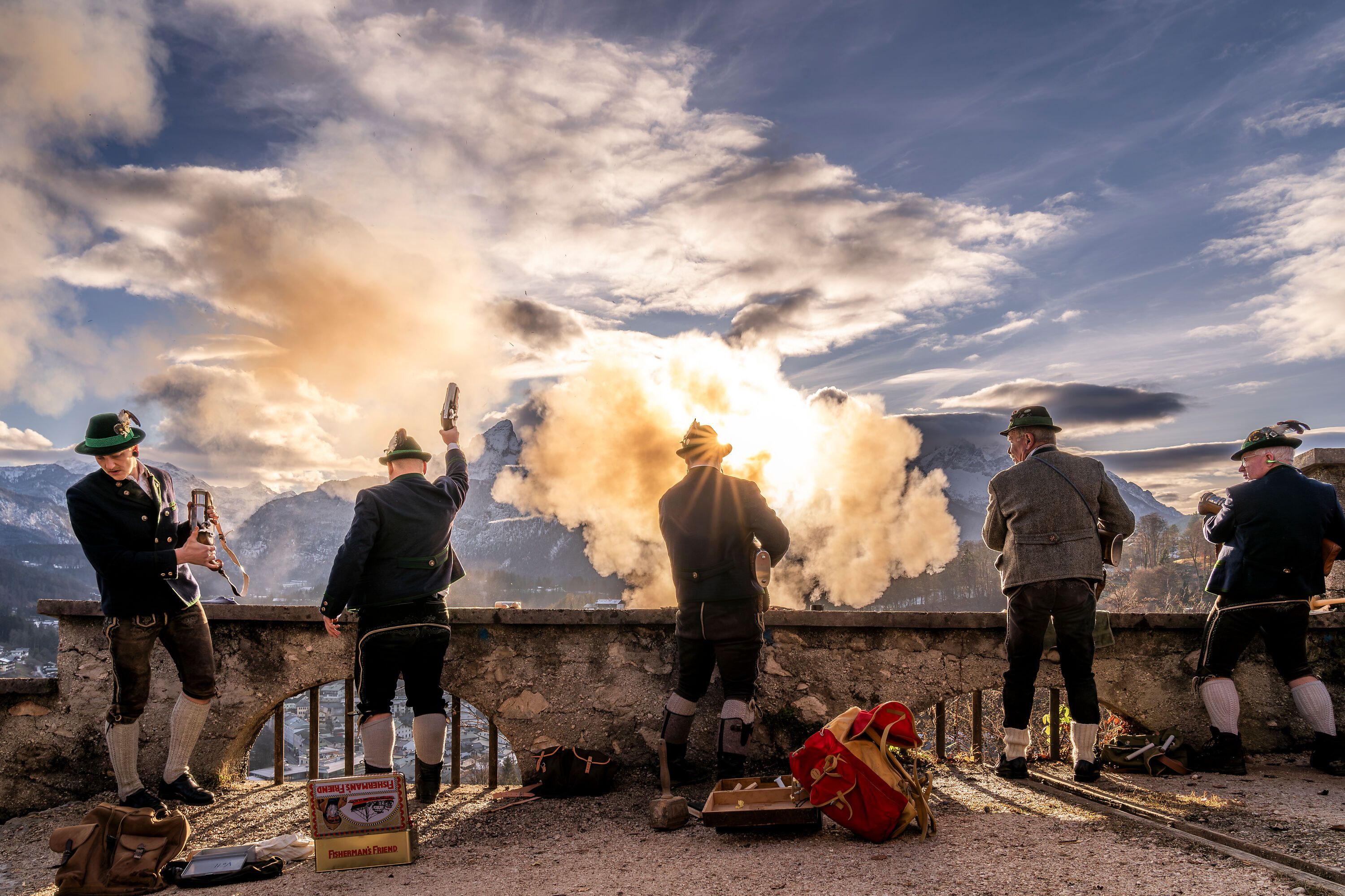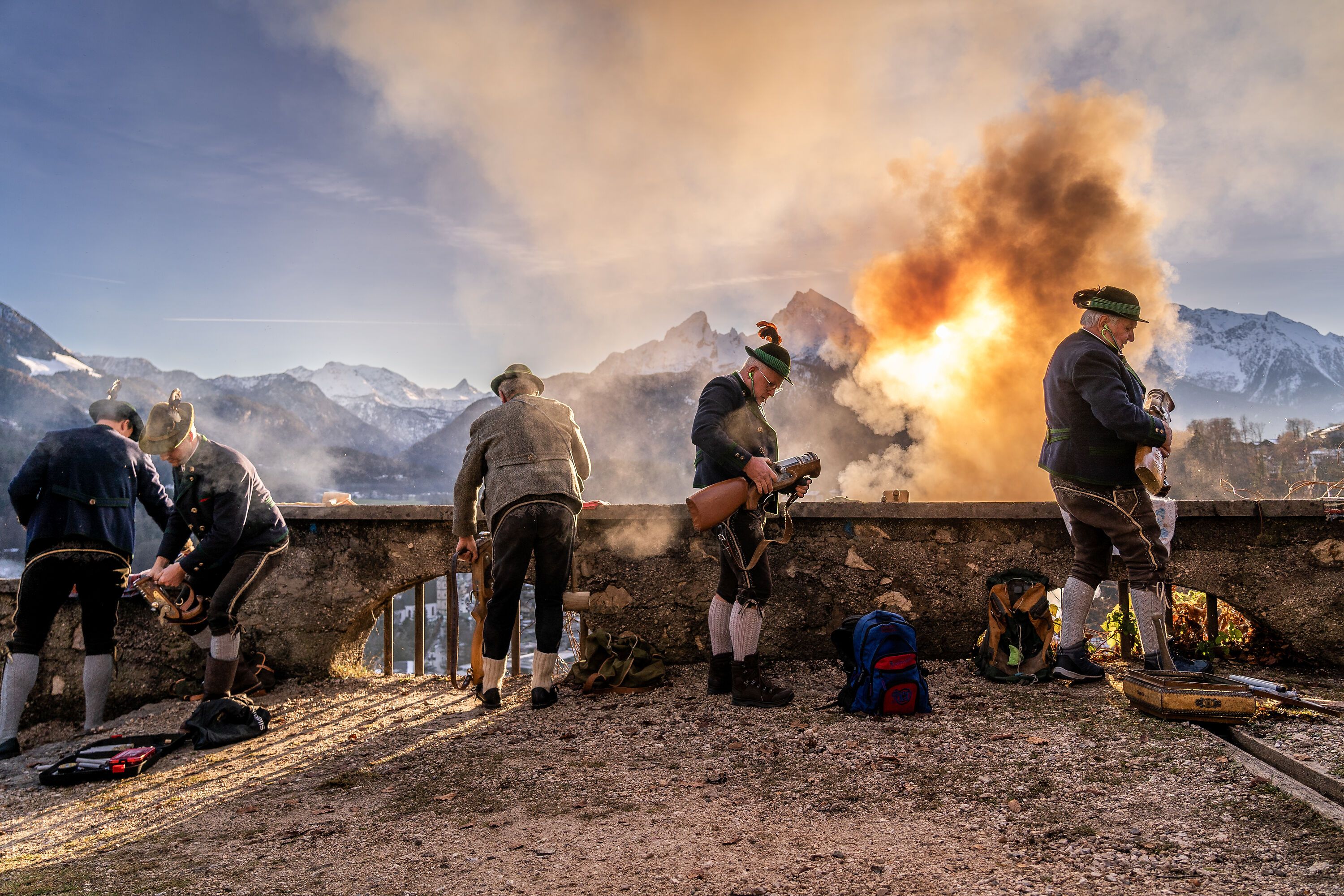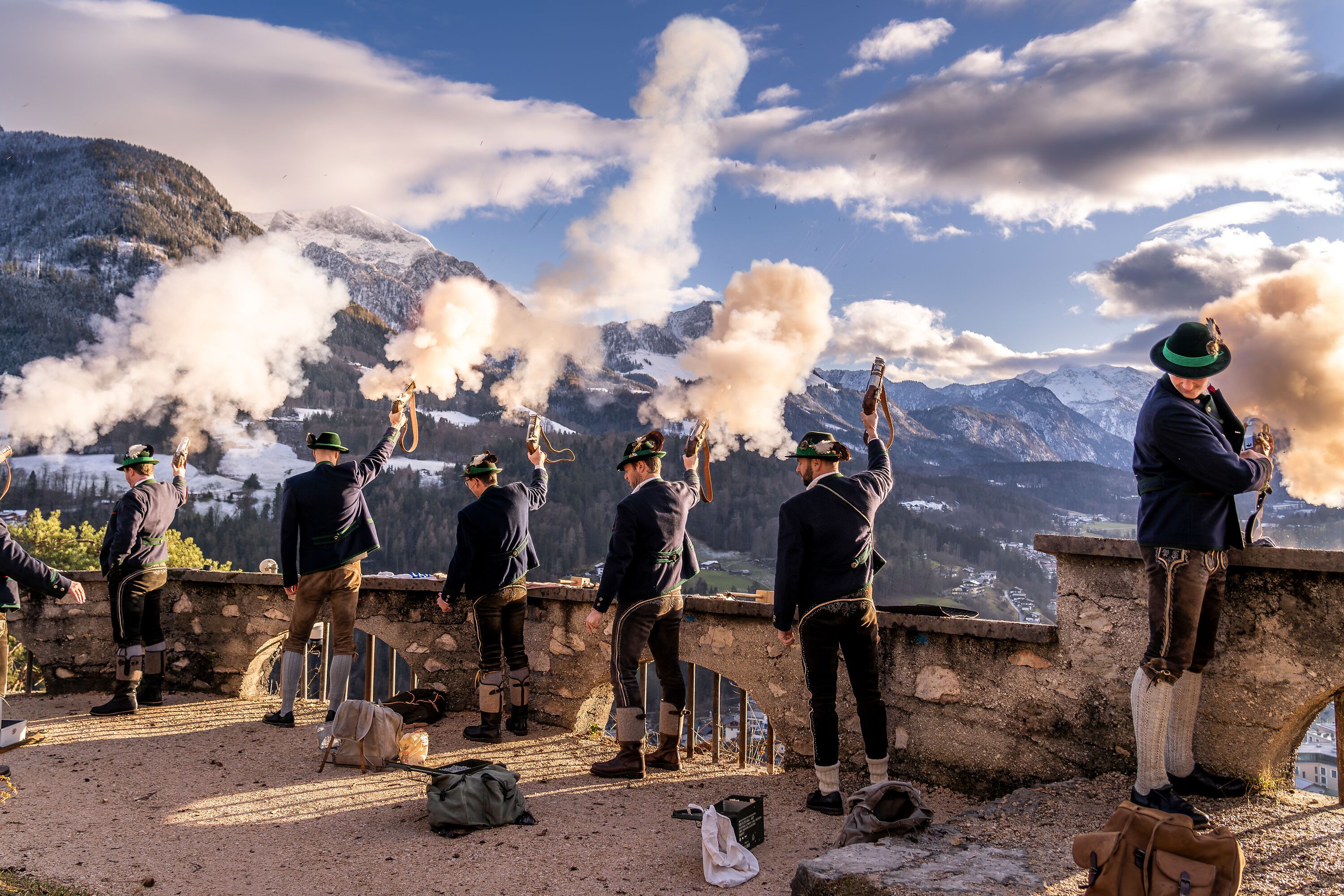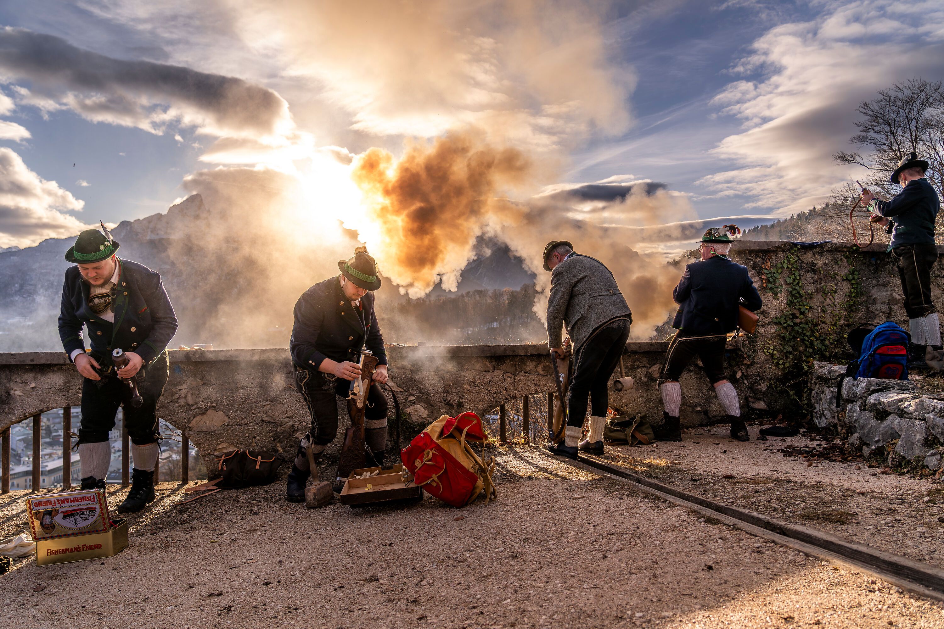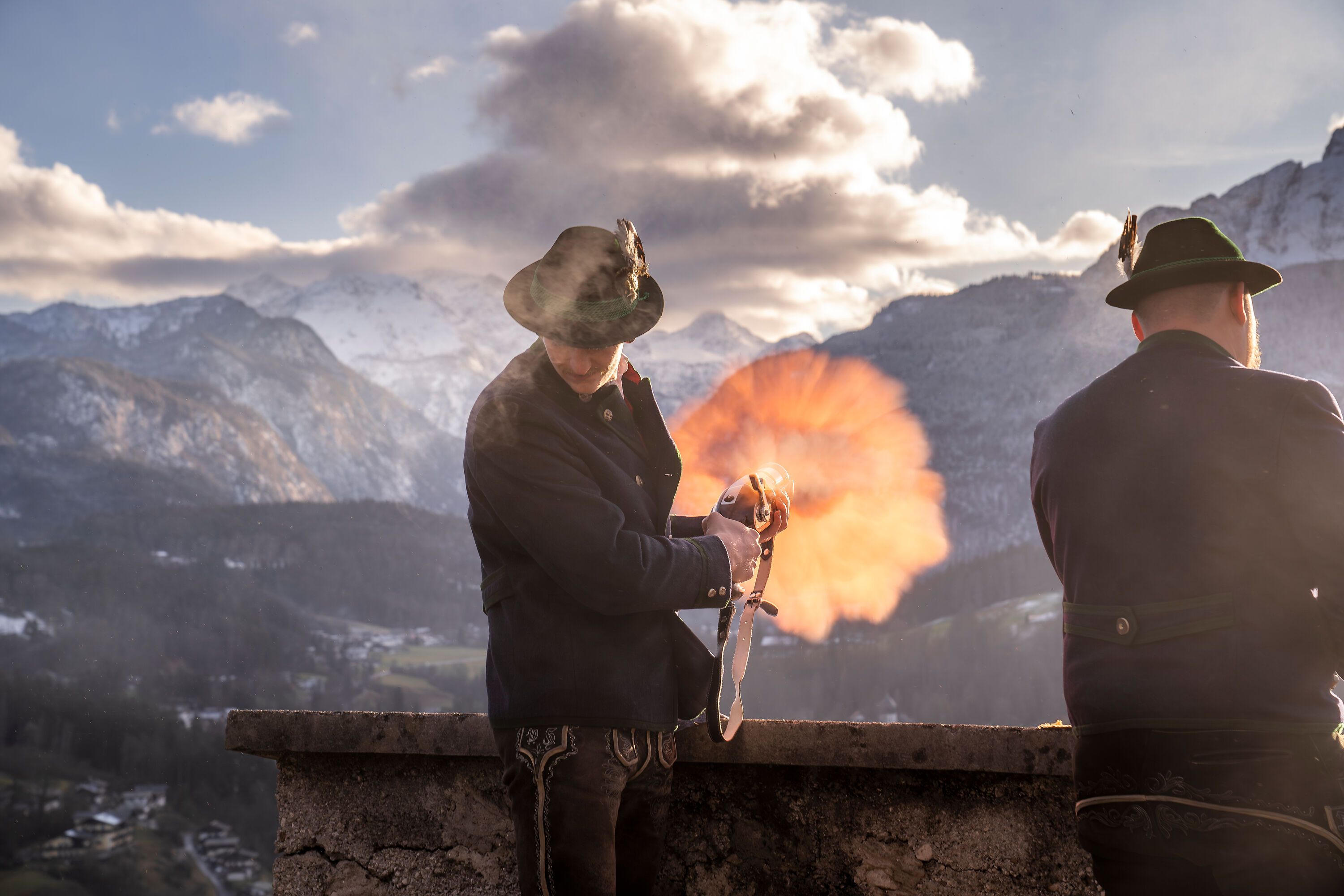 Christkindl-Schießen der WeihnachtsschützenDie Wurzeln des Weihnachtsschießens in Berchtesgaden sind ursprünglich im heidnischen Lärmbrauchtum zu finden. In der vor Jahrhunderten noch rauhen, unwirtlichen Gegend des Berchtesgadener Landes versuchten die Menschen, die düstere, kalte Jahreszeit bereits zu diesem frühen Zeitpunkt mit Kettengerassel und Glockenläuten zu vertreiben und die Natur wieder aufzuwecken. Seit Beginn des 19. Jahrhunderts schießt man im Berchtesgadener Land mit den kurzläufigen, großkalibrigen Handböllern. Dann hallen im gesamten Talkessel die dumpfen Schüsse wider - die aufkommenden Gefühle bei diesem fast mystischen Ritual zwischen den hohen, schneebedeckten Berggipfeln sind unbeschreiblich.