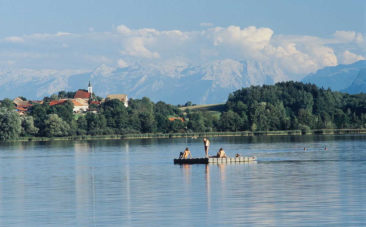 Sonnen, Campen, Baden, Radfahren und Wandern mit Fernblick auf die Berchtesgadener Berge. Diesen Aktivitäten können Sie im und rund um den wunderschön gelegenen Moor-Badesee inmitten des Landschafts-Naturschutzgebietes Haarmoos nachgehen.