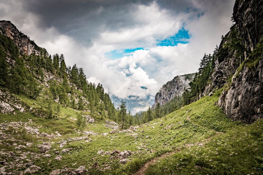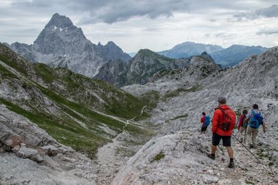 Die Etappe 1b des Berchtesgadener Gipfelwegs beginnt am Schneibsteinhaus. Die Etappe führt über die Kleine Reibn, Seeleinsee, den unteren Hirschenlauf hinauf zur Gotzenalm.