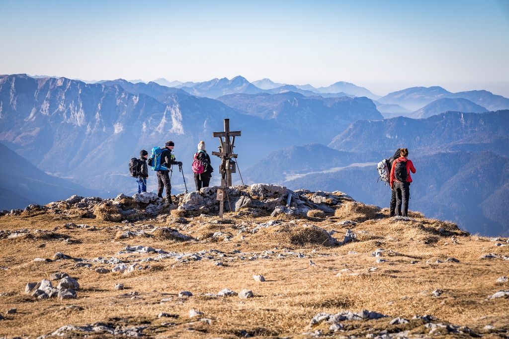 Wir starten am Schneibsteinhaus und steigen hinauf zum 2.276 Meter Schneibstein. Er gilt als der am leichtesten zu besteigende Zweitausender der Berchtesgadener Berge. Der Ausblick von seinem Hochplateau ist dennoch spektakulär. Auf dem Weg der Kleinen Reibn steigen wir hinunter zum Seeleinsee. Wer eine eiskalte Abfrischung braucht, hupft kurz hinein. Kurz nach dem See zweigt der Weg rechts ab in den Stiergraben Richtung Priesbergalmen. Die Abzweigung zum Hirschenlauf dürfen wir nicht verpassen. Auf dem schmalen Pfad, hölzerne Stiegen und teils versicherten Stellen erreichen wir die Forststraße und folgen ihr bis zum Hochplateau der Gotzenalm.