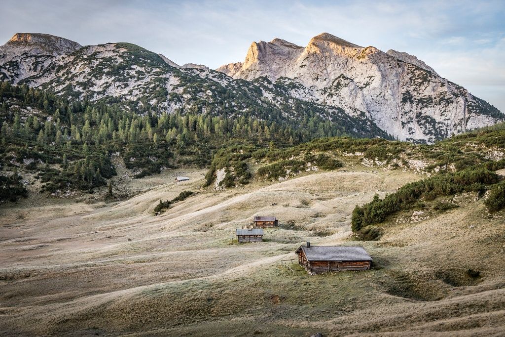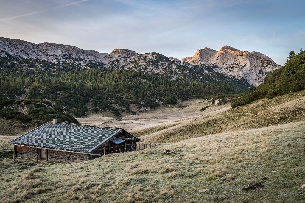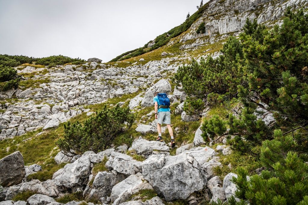 Ausgangspunkt ist die Bushaltestelle am Hintersee. Zuerst in Richtung Klausbachtal folgen wir dann der Beschilderung hinauf zur Halsalm. Nach einem knackigen Aufstieg zur Halsgrube nehmen wir den Böslsteig. Der führt steil und teilweise versichert durch die Ostflanke der Reiteralm. Latschen säumen den Weg hinauf zum Steinbergrücken. Genießen wir den ersten Blick auf die Hochfläche. Hinab geht es durch die Steinberggasse zu den Almwiesen rund um die Neuen Traunsteiner Hütte. Von der Hütte aus steigen wir durch schattiges Waldgebiet, vorbei an uralten Zirbenbäumen. Über ein stetiges Auf und Ab des Wachterlsteiges erreichen wir den Wanderparkplatz Wachterl.