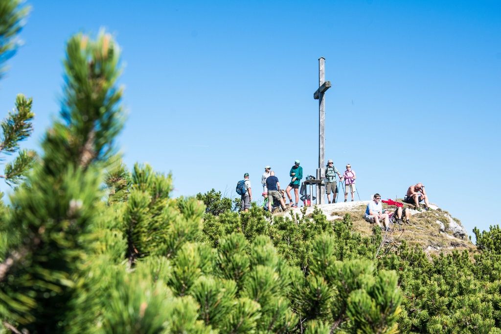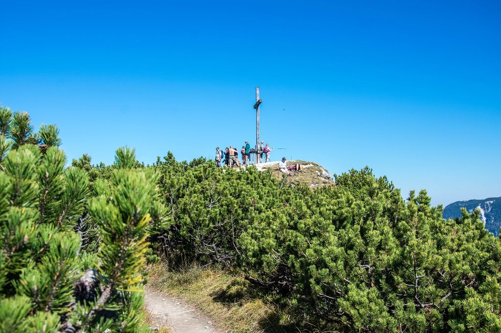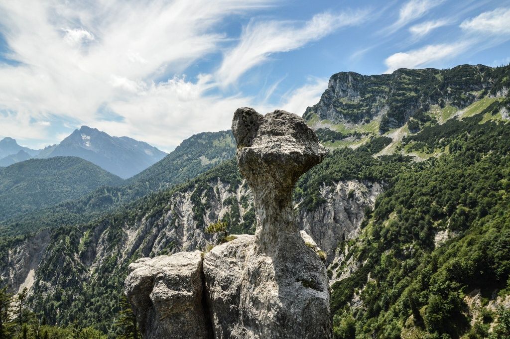 Wir starten am Wanderparkplatz Wachterl und gehen, am idyllischen Taubensee vorbei, hinauf zur Mordaualm. Hier oben treffen wir auf drei bewirtschaftete Kaser und haben die Qual der Wahl, wo wir einkehren wollen. Auf dem Mitterbergsteig gelangen wir zur Mitterkaser Diensthütte und weiter bergauf zur Törlscharte. Wer möchte, kann den kurzen Anstieg auf den Törlkopf wagen. Weiter geht es über den ausgeprägten Pfad zum Karkopf, dessen Gipfel ganz Sportliche noch mitnehmen. Der Weg führt bergab zur Steinernen Agnes, einer bizarren Felsformation. Zwischen der Schlafenden Hexe hindurch geht es unterhalb des Rotofensattels hinab nach Hallthurm. Das Lattengebirge liegt überschritten hinter uns.