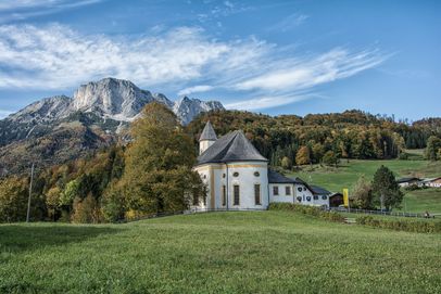 Gleich zu Beginn gibt es schon den ersten Höhepunkt. Der Fußweg entlang der Königsseer Ache wurde zurecht als Deutschlands schönster Wanderweg ausgezeichnet. Das muntere Rauschen der Ache begleitet uns ein gutes Stück, bis wir abbiegen und an der Talstation der Jennerbahn den Weg durch den Wald bis zum berühmten Malerwinkel nehmen. Der Ausblick über den Königssee ist einfach beeindruckend. Die Seelände entlang kommen wir in die Ortsmitte von Schönau a. Königssee. Am Gradierwerk vorbei, wo wir tief die solehaltige Luft einatmen, wandern wir durch die Oberschönau in Richtung Hammerstiel. Über Weiden und durch kleine Wäldchen geht es munter bergab bis zur Wimbachbrücke, dem Ziel unserer ersten Etappe.