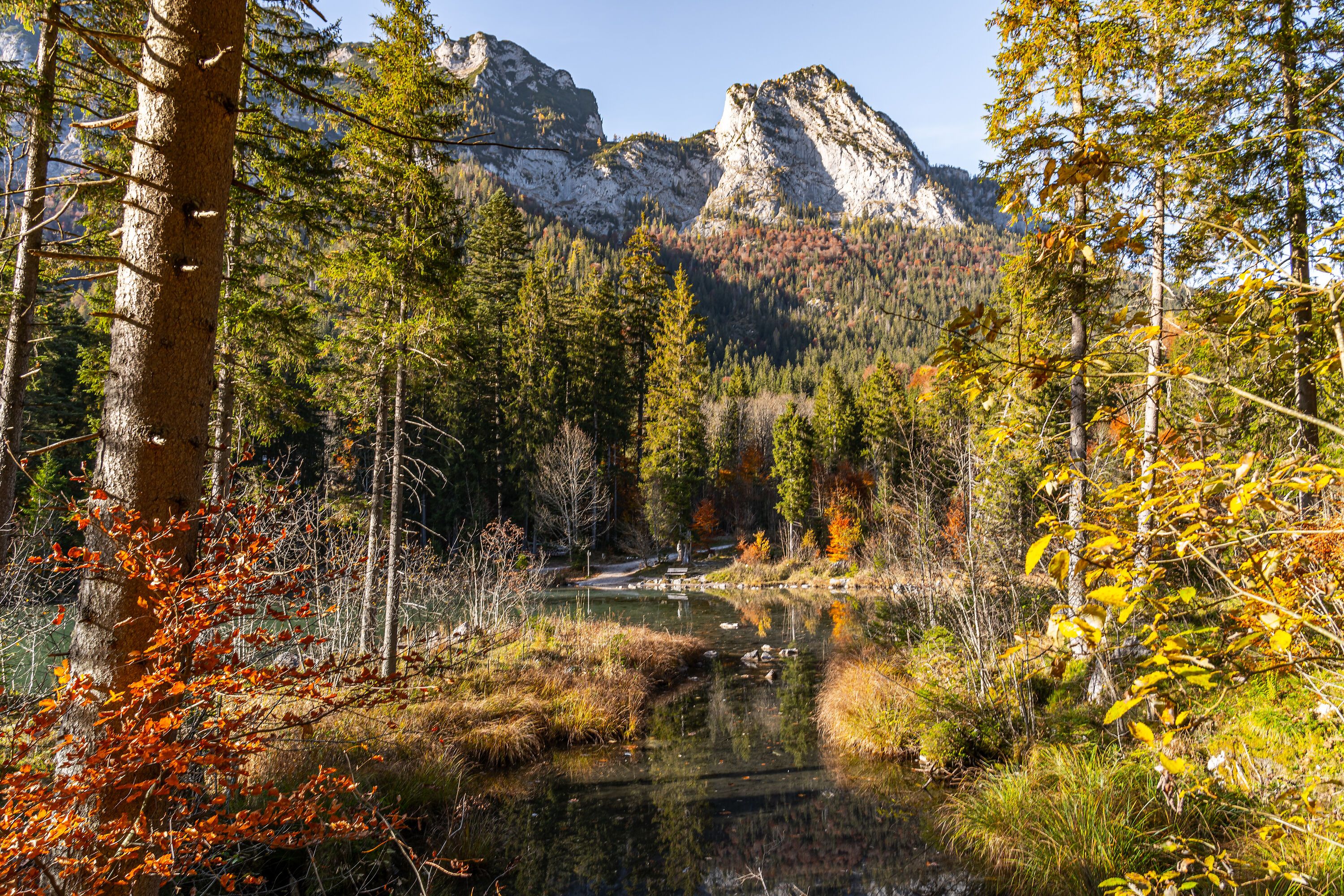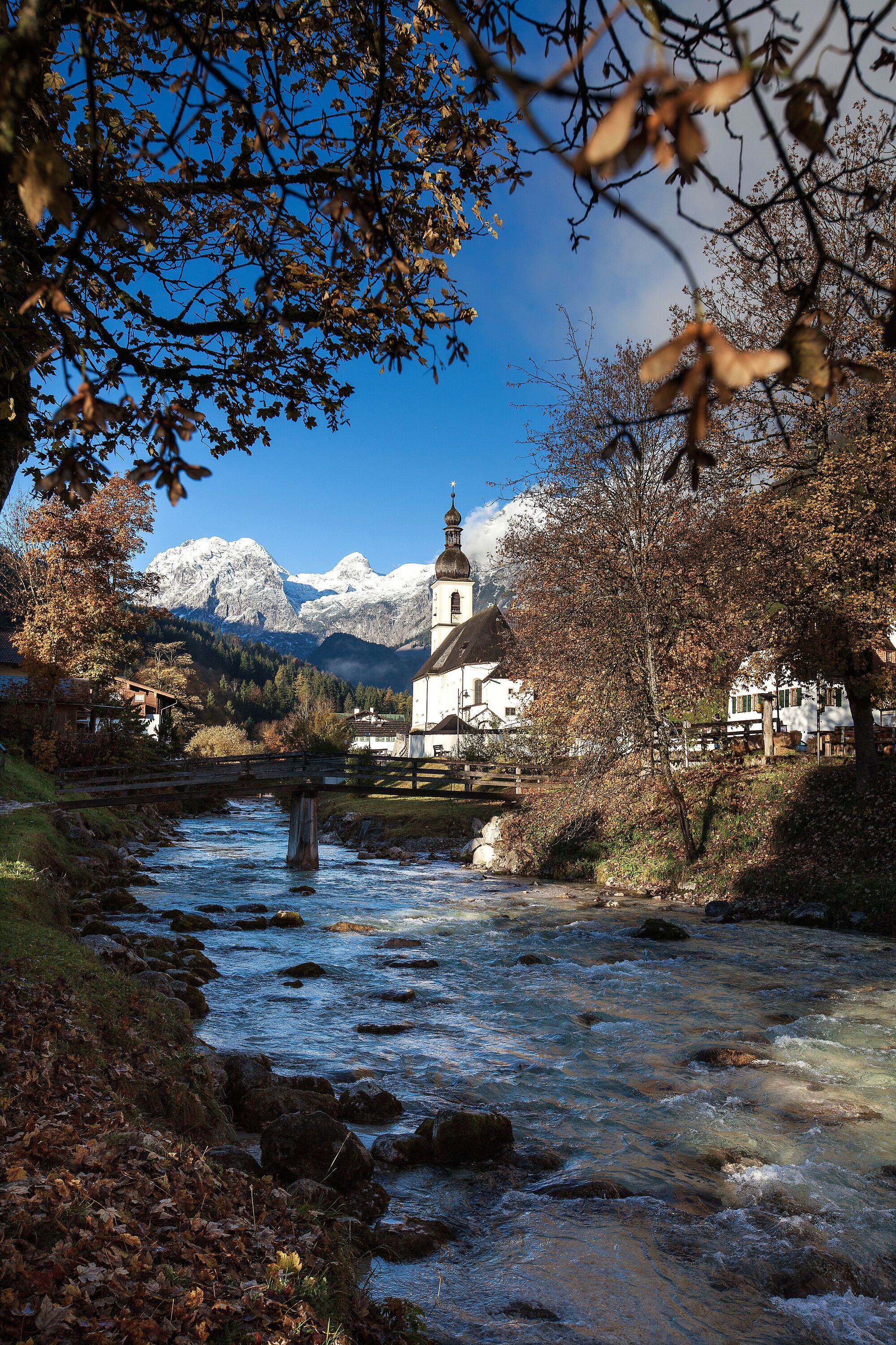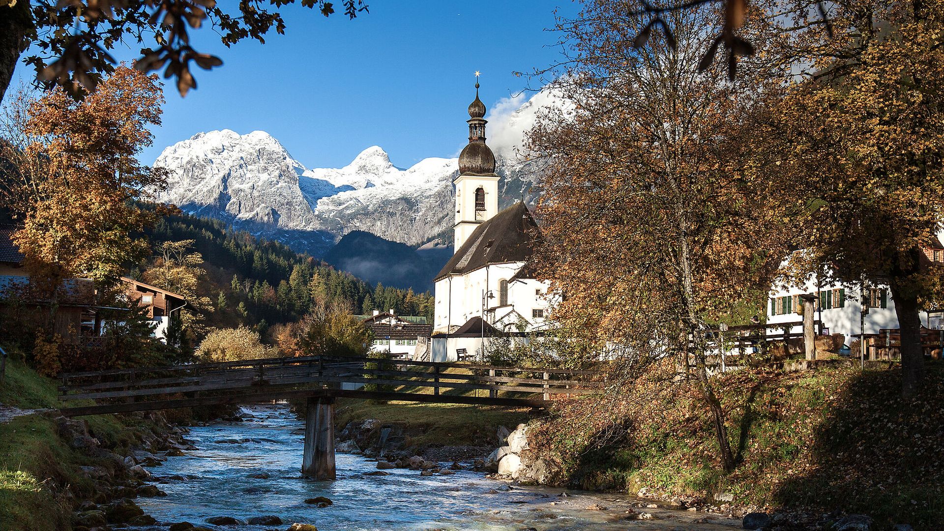 Der Weg führt von der Wimbachbrücke die Ramsauer Ache entlang bis zur weltbekannten Kirche St. Sebastian. Das beliebte Fotomotiv nutzen wir für eine Pause. Den Fotoapparat halten wir gleich griffbereit, denn im Zauberwald und rund um den romantisch eingebetteten Hintersee bieten sich tolle Motive. Über den König-Max-Weg gelangen wir zum Taubensee und genießen das Panorama, das sich vom Soleleitungsweg bietet. Am Söldenköpfl biegen wir in den Vierradweg ein und kommen zum Böcklweiher. In dem kleinen Weiher spiegelt sich der Watzmann fotogen. Es ist nicht mehr weit bis nach Bischofswiesen. Am Bahnhof überqueren wir die Bischofswieser Ache und erreichen mit der Herz-Jesu-Kirche unser Ziel.