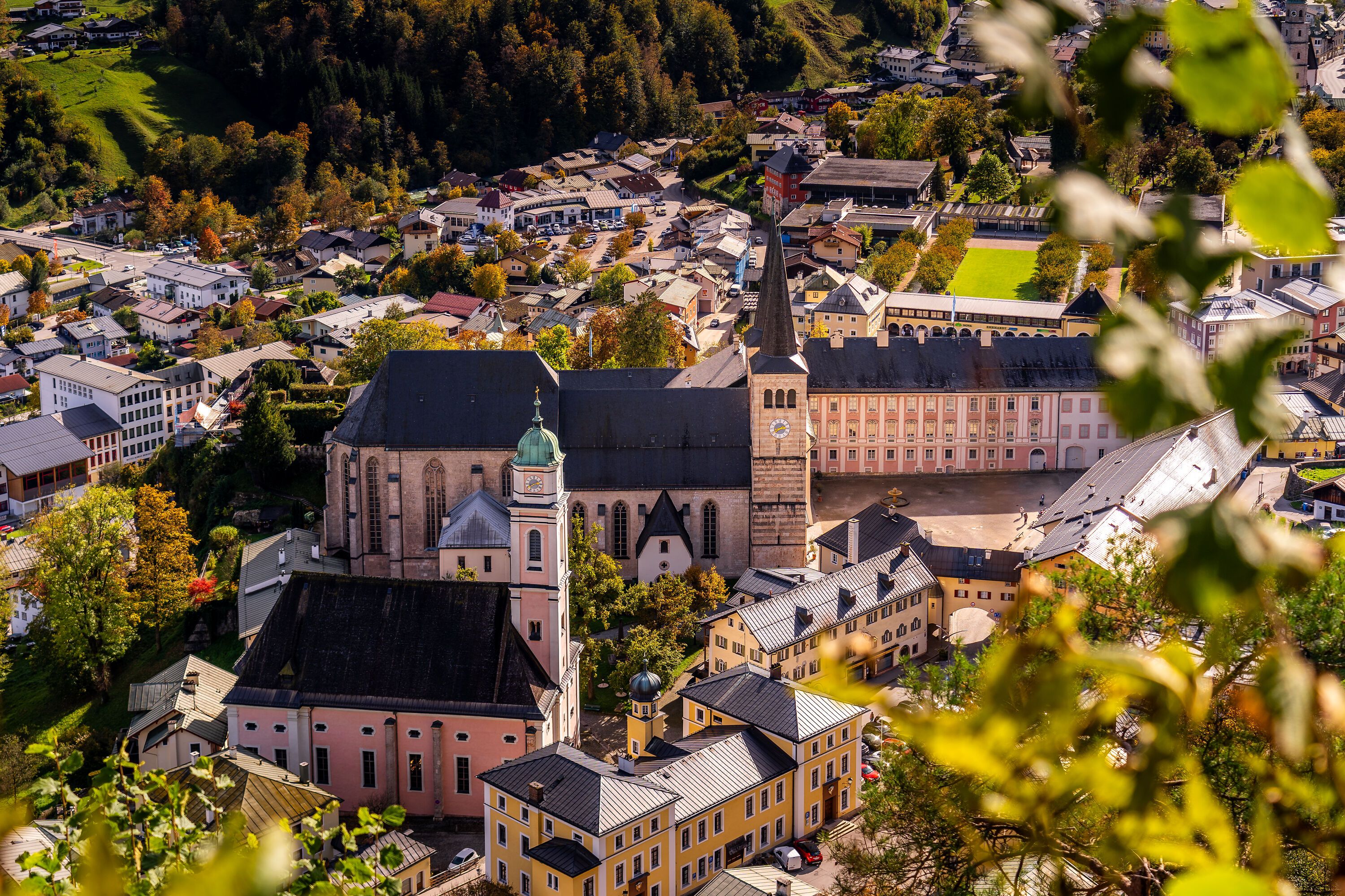 Bevor wir starten, besichtigen wir in der Herz-Jesu-Kirche die imposante Christusfigur. Über den Maximiliansreitweg wandern wir die Serpentinen hinauf zur Kastensteinerwand. Die Aussicht von hier oben ist lohnend. Wieder zurück auf dem Maximiliansreitweg können wir auf dem Trimm-Dich-Pfad ein paar Übungen einlegen, bevor wir über den Rostwald den Doktorberg hinunter in den Markt Berchtesgaden spazieren. An der Kirchleitn-Kapelle genießen wir den Ausblick. Am Schlossplatz bewundern wir die Stiftskirche und das Schloss Berchtesgaden. Der Alte Friedhof in Berchtesgaden ist eine Besichtigung wert, und über die Sonnenpromenade kommen wir zum Soleleitungssteg, dem wir bis zum Oberweinfeld folgen.