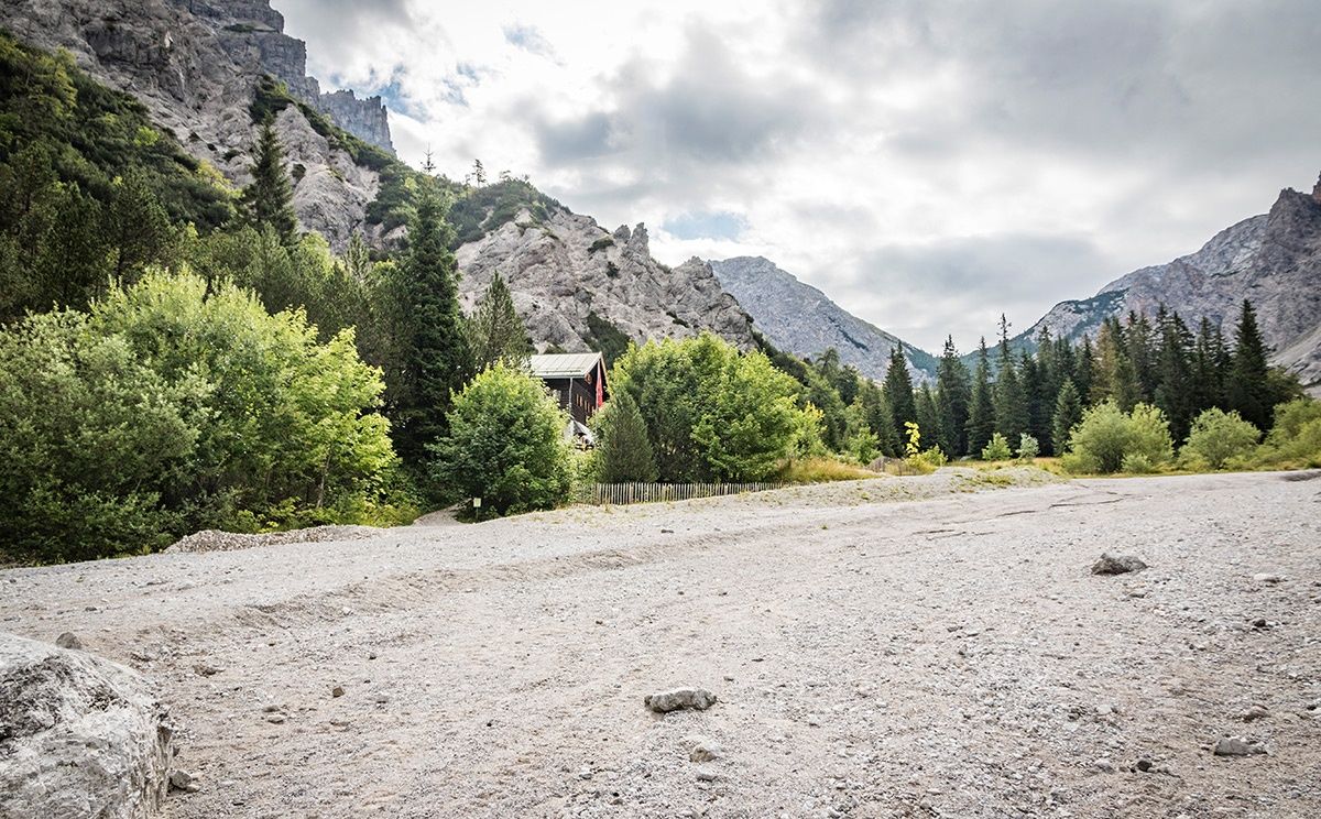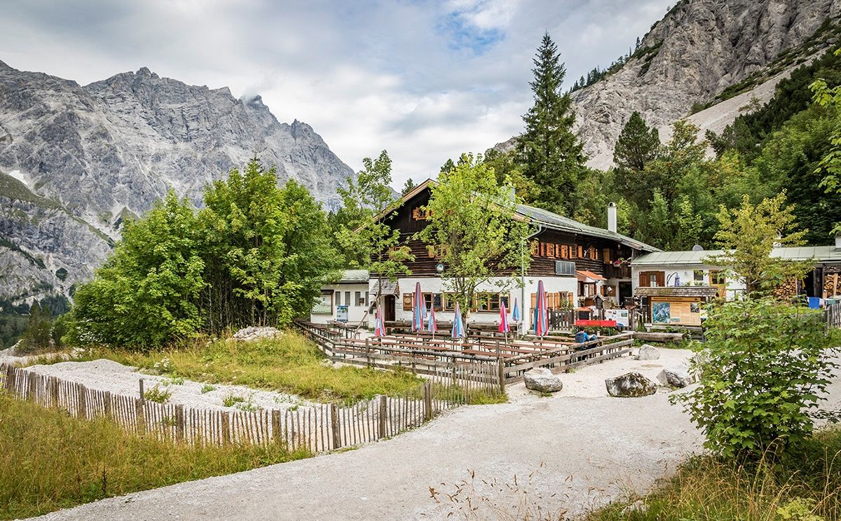 Gut ausgeruht und gestärkt durch ein ausgiebiges Frühstück, das Sie vielleicht vor der Hütte in der Sonne sitzend verzehrt haben, folgen Sie dem Wimbachgries bis zum Talschluss. Deutlich steiler geht der Weg nun hinauf zur Trischübelalm, von hier noch ein Stück weiter bergauf und dann wieder hinunter zur Quelle unterm Graskopf, um dann wieder durch die Hundstodgrube zum Hundstodgatterl hinaufzuleiten. Nun schlängelt er sich unter den Ostabbrüchen des Hundstods durch, bis der Blick nach Süden wieder frei wird. Das Ingolstädter Haus kommt in Sicht, Sie aber gehen an der Abzweigung nach links, Richtung Kärlinger Haus. Der Weg zieht nun am Rand der Karsthochfläche des Steinernen Meeres dahin, ohne große Höhenunterschiede, aber in ständigem Auf und Ab, bis er endlich hinunter führt zum herrlich gelegenen Kärlinger Haus am Funtensee. 1000 Hm bergauf, 700 Hm bergab, 5–7 Std.*