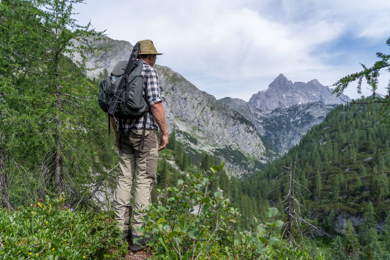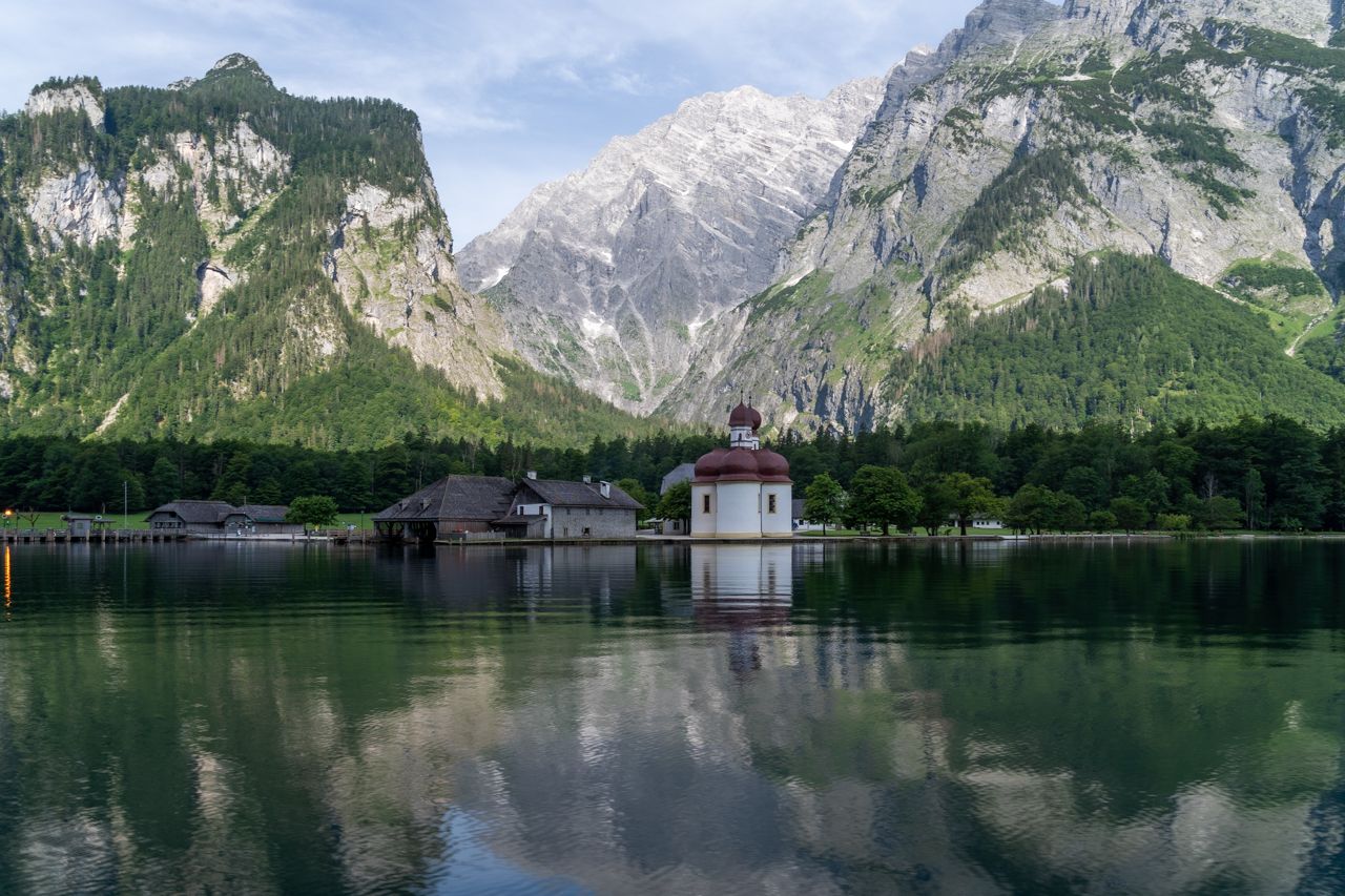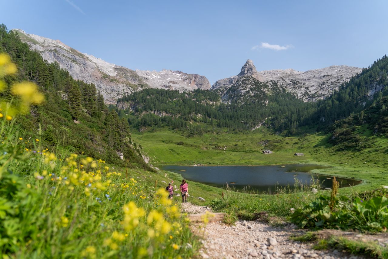 Nach der Schifffahrt über den Königssee nach St. Bartholomä führt ein uralter Weg erst etwa 2 Kilometer flach am Ufer des Königssees entlang, bevor es dann dann mit herrlichen Ausblicken auf Königssee und Obersee aufwärts durch den Wald geht. Am Schrainbachfall vorbeiführt uns die Bergtour zum Funtensee über die herrlich gelegene Schrainbachalm zur berüchtigten Saugasse: 36 Kehren und 400 m Höhenunterschied liegen drohend vor uns. Nach dieser Schlüsselstelle wandern wir gemächlich ansteigend zum Kärlingerhaus am Funtensee. Hier beginnt das Steinerne Meer, ein ca. 13 km langes und 5 km breites, karstiges, unwirtliches und nahezu wasserloses Hochplateau.