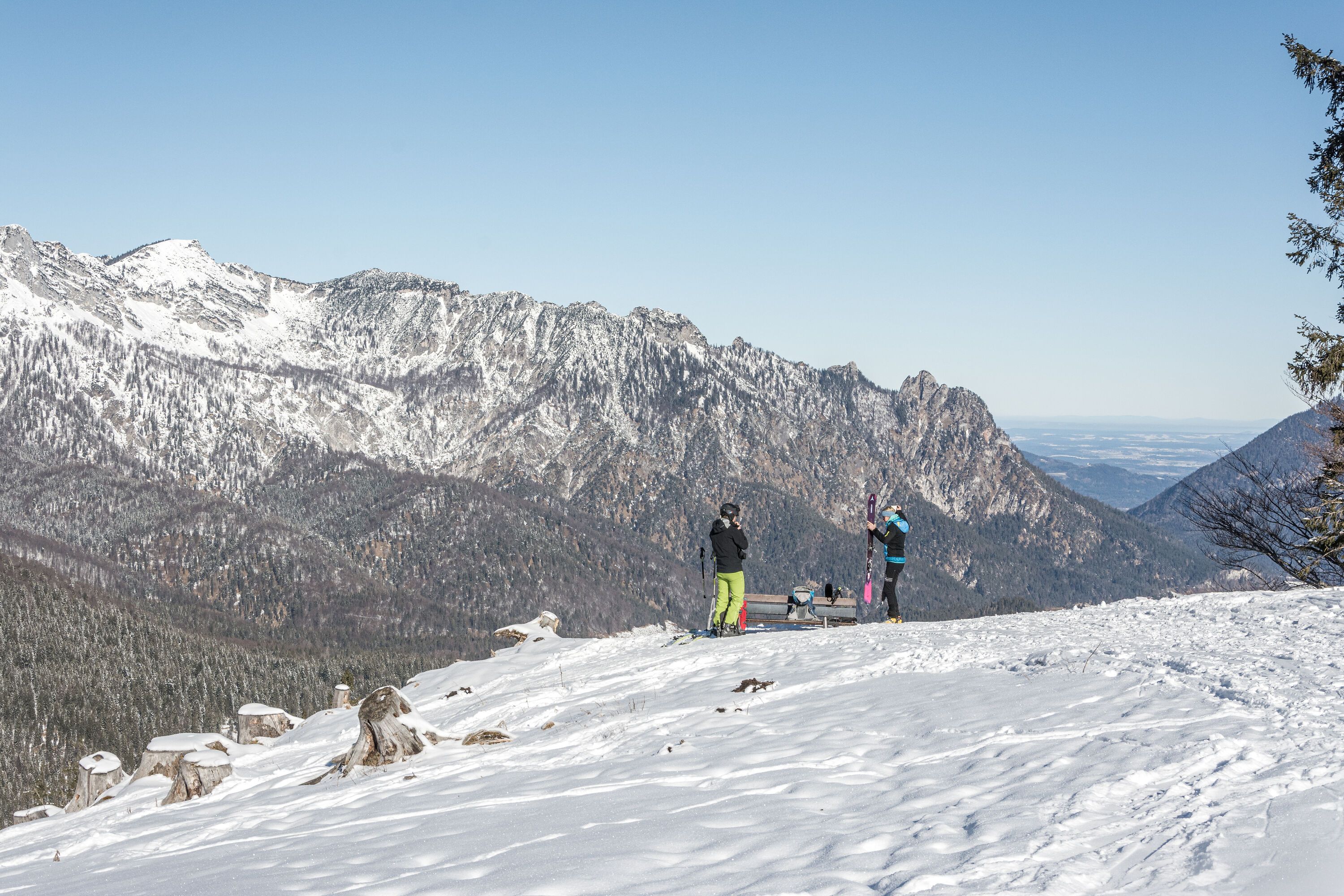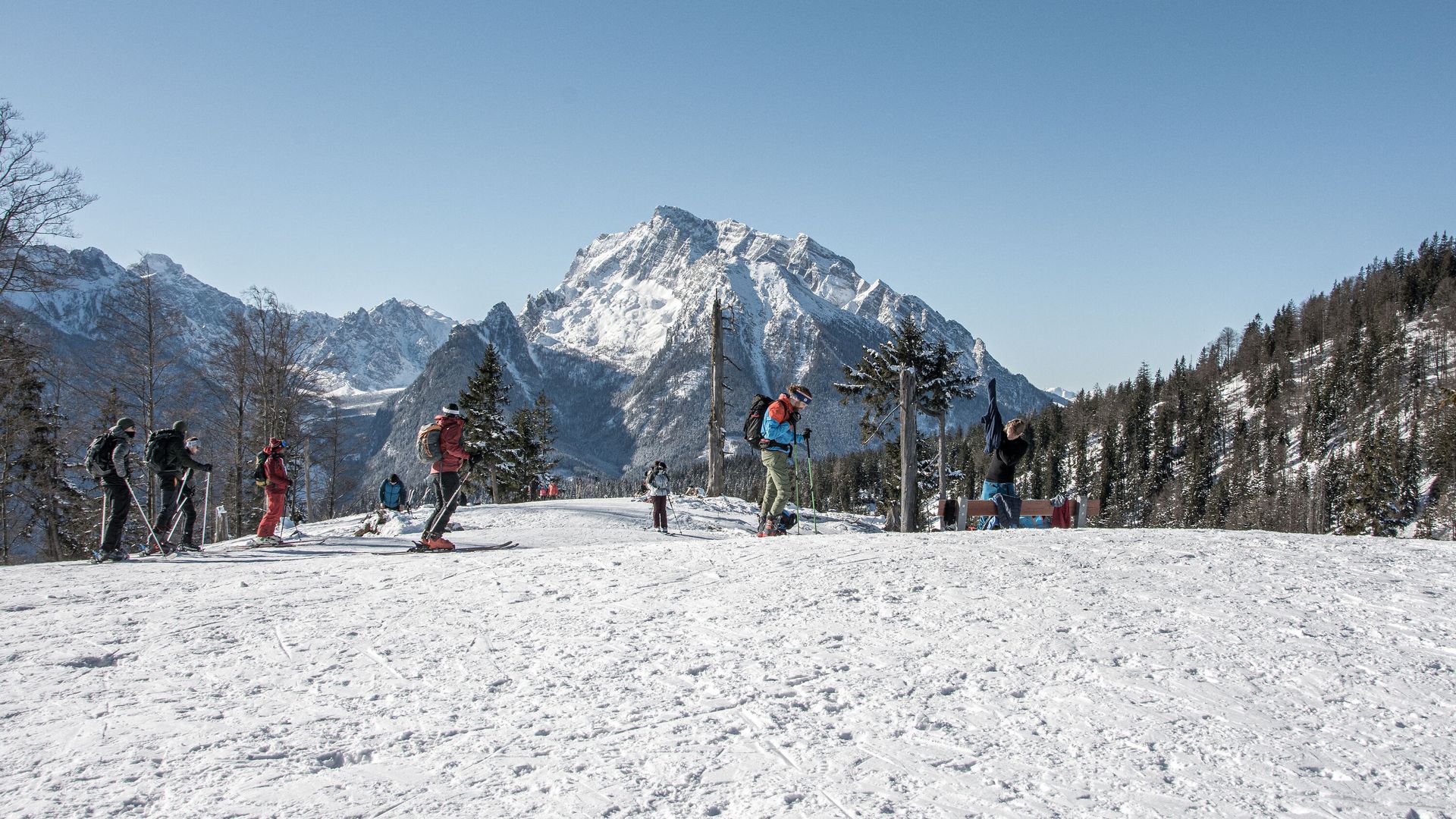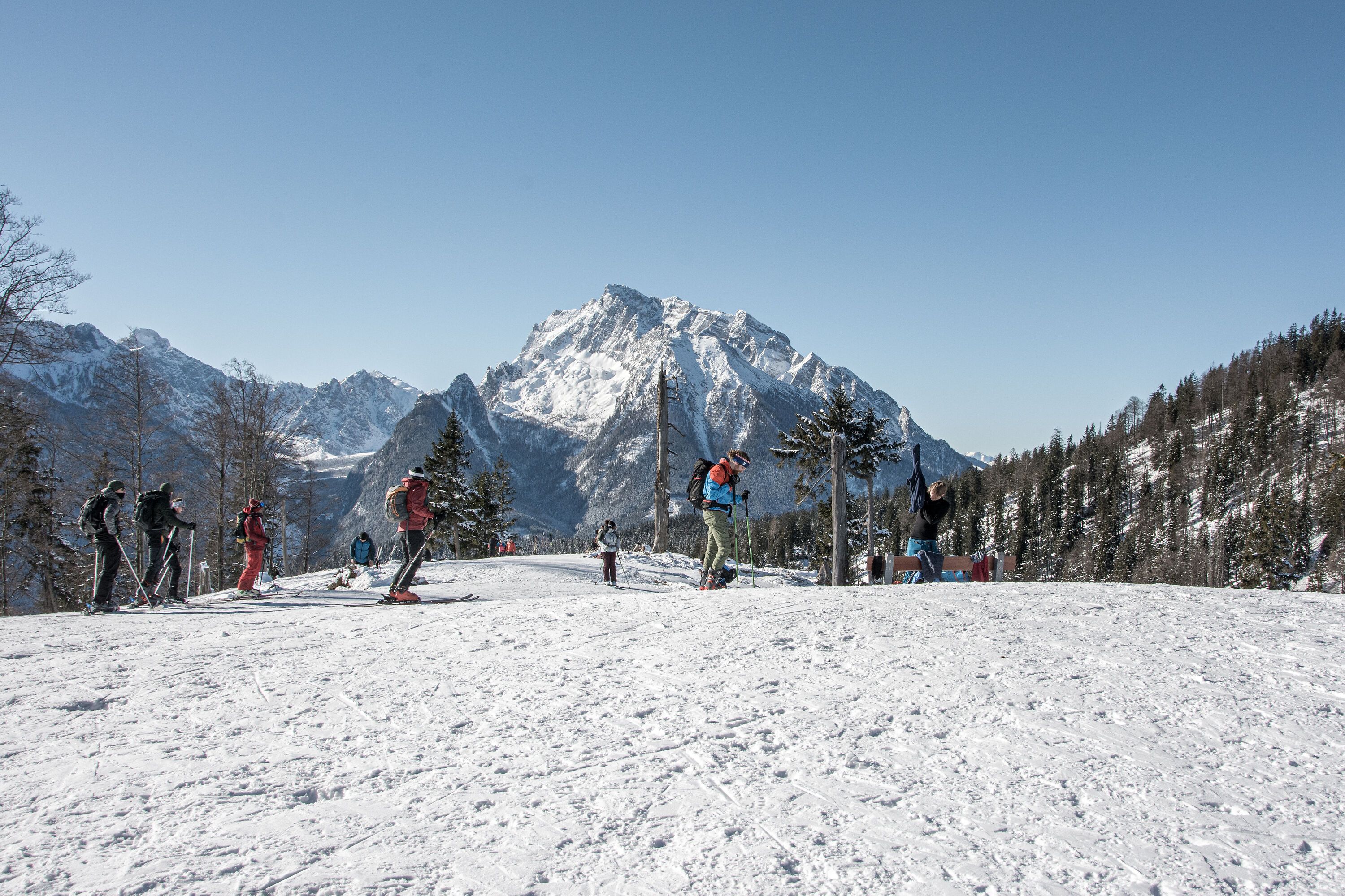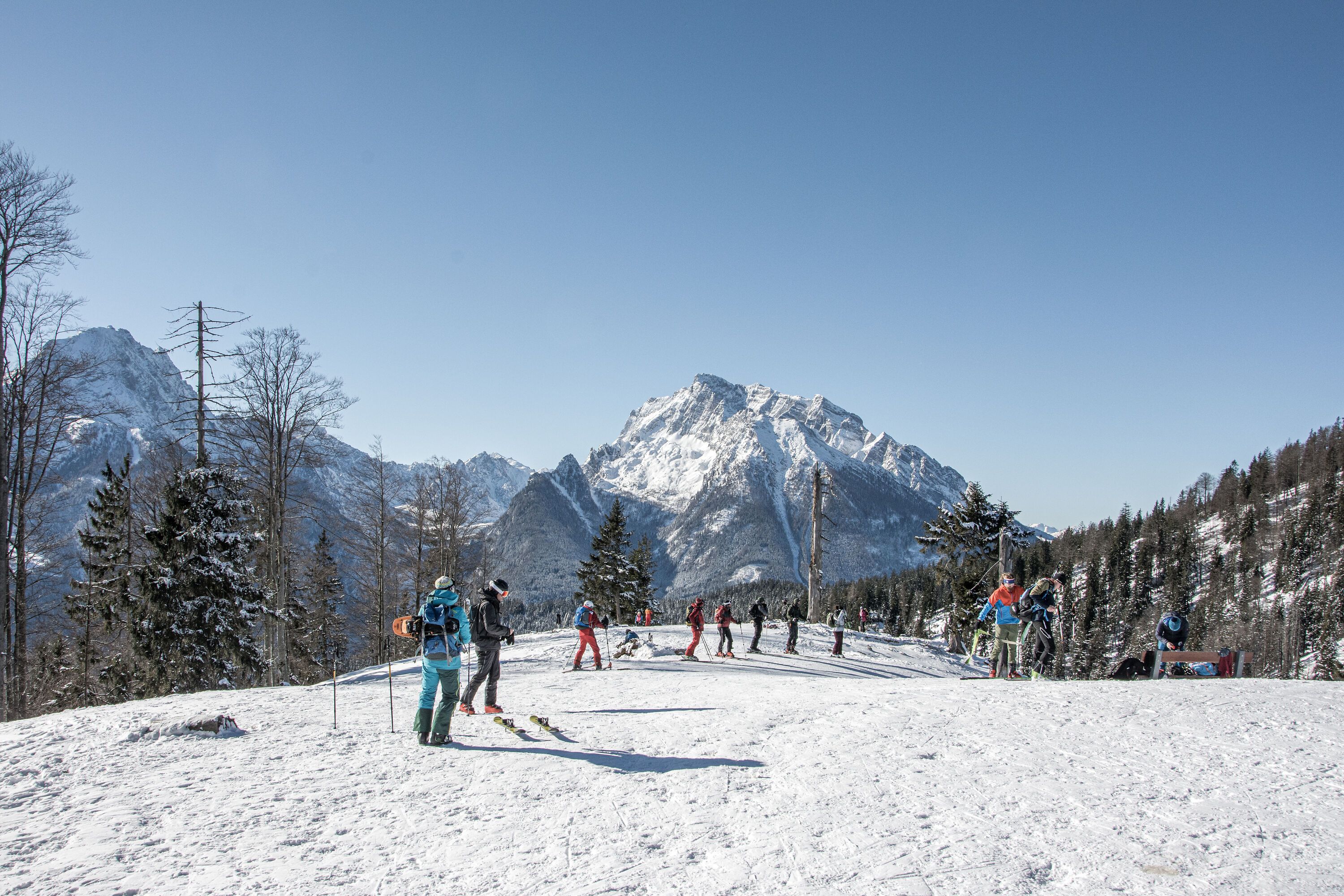 Die Skitour auf den Götschenkopf führt von Bischofswiesen durch den Wald entlang der Talabfahrt zum Skigebiet Götschen un dann entlang der sogenannten Damenabfahrt bis unterhalb der Bergstation. Hier zweigt die Skitour kurzeitig auf einen steilen Weg in den Wald ab und führt zum Gipfel des Götschenkopfes.