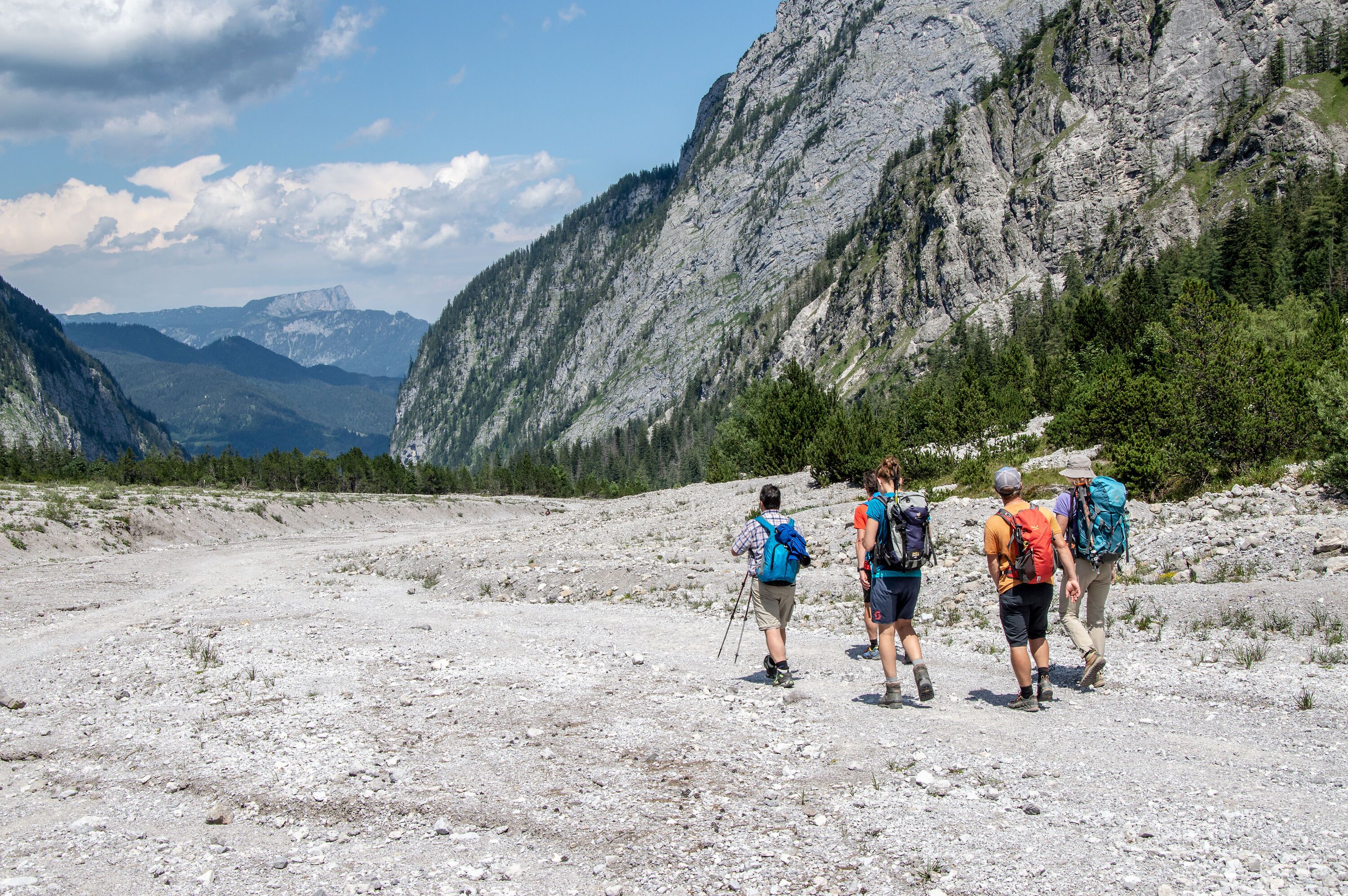 Das Steinerne Meer ist ein eindrucksvolles Karsthochplateau zwischen Watzmannmassiv, Königssee, Hagengebirge, Hochkönigstock und Hochkaltermassiv. Der größte der neun Gebirgsstöcke der Berchtesgadener Alpen wirkt je nach Aussichtspunkt wie ein zu Stein gewordenes Meer mit wogenden, steinernen Wellen - daher auch der Name. Die Hüttentour verläuft größtenteils auf problemlos zu begehenden Bergwegen und -steigen. Lediglich auf der zweiten Etappe sind einige kurze ausgesetzte, drahtseilversicherte Passagen zu überwinden.