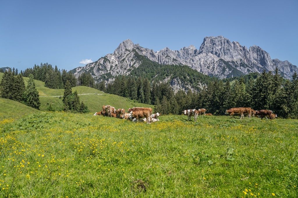 Der Litzlalm Rundweg beginnt ganz gemütlich: Und zwar mit der Fahrt mit dem Almerlebnisbus vom HIntersee bis zum Hirschbichl. Vom Hirschbichl erfolgt der Aufstieg zur Litzlam über den schattigen Waldpfad. Nach der Einkehr in der Jausenstation wandern wir über die Forststraße in einer großzügigen Schleife über die Hufnagelkreuzung zurück zum Hirschbichl.
