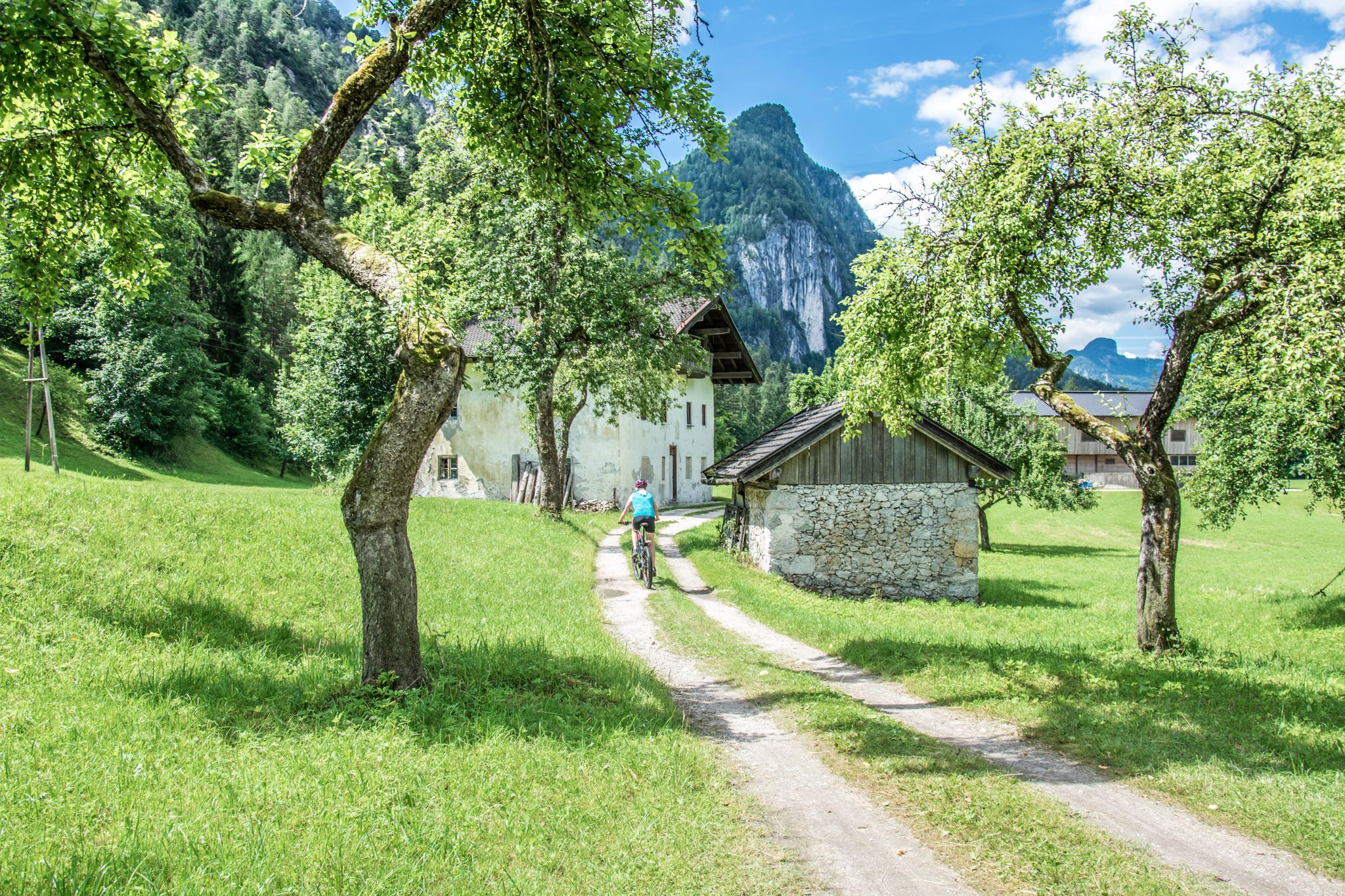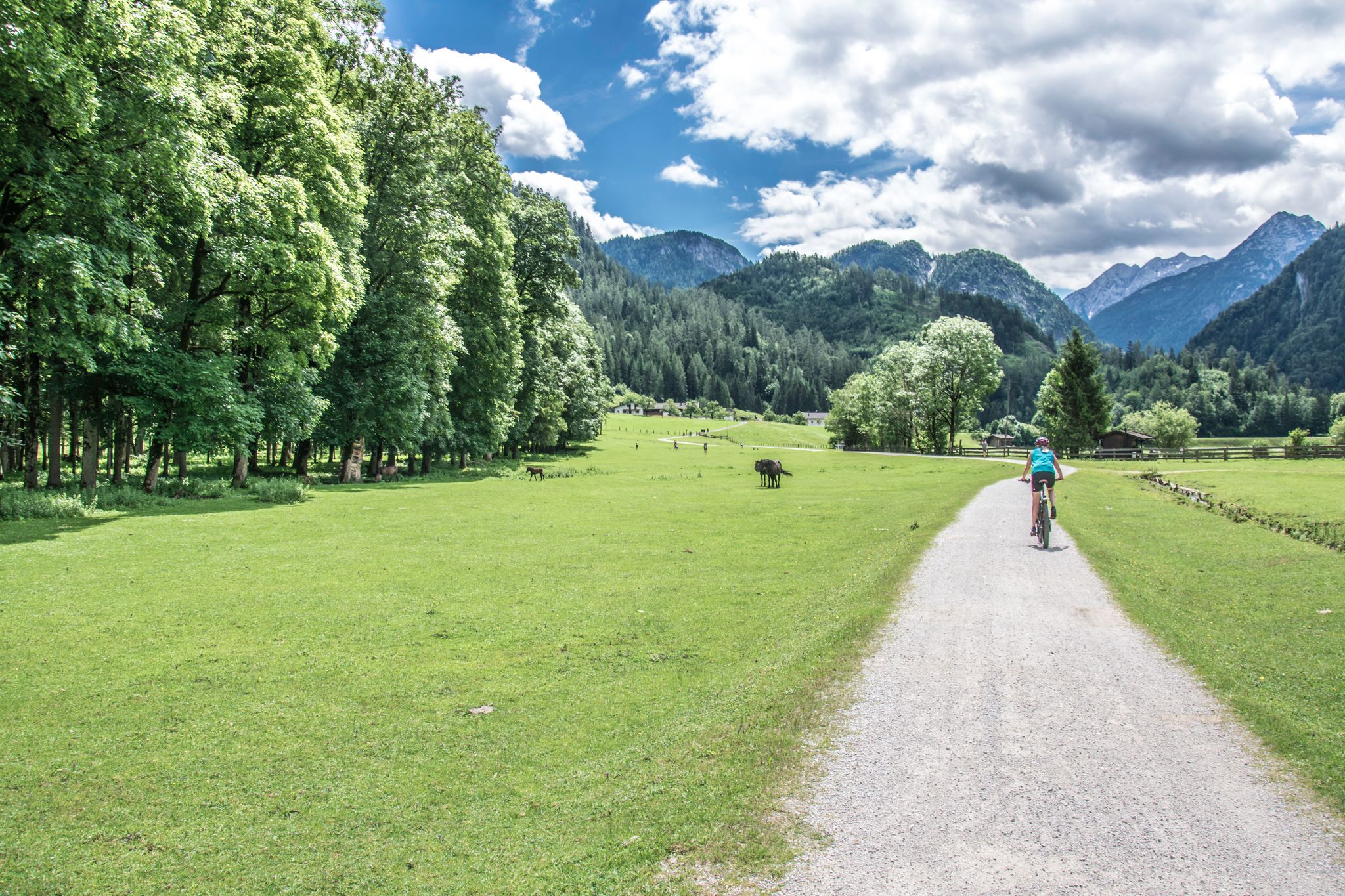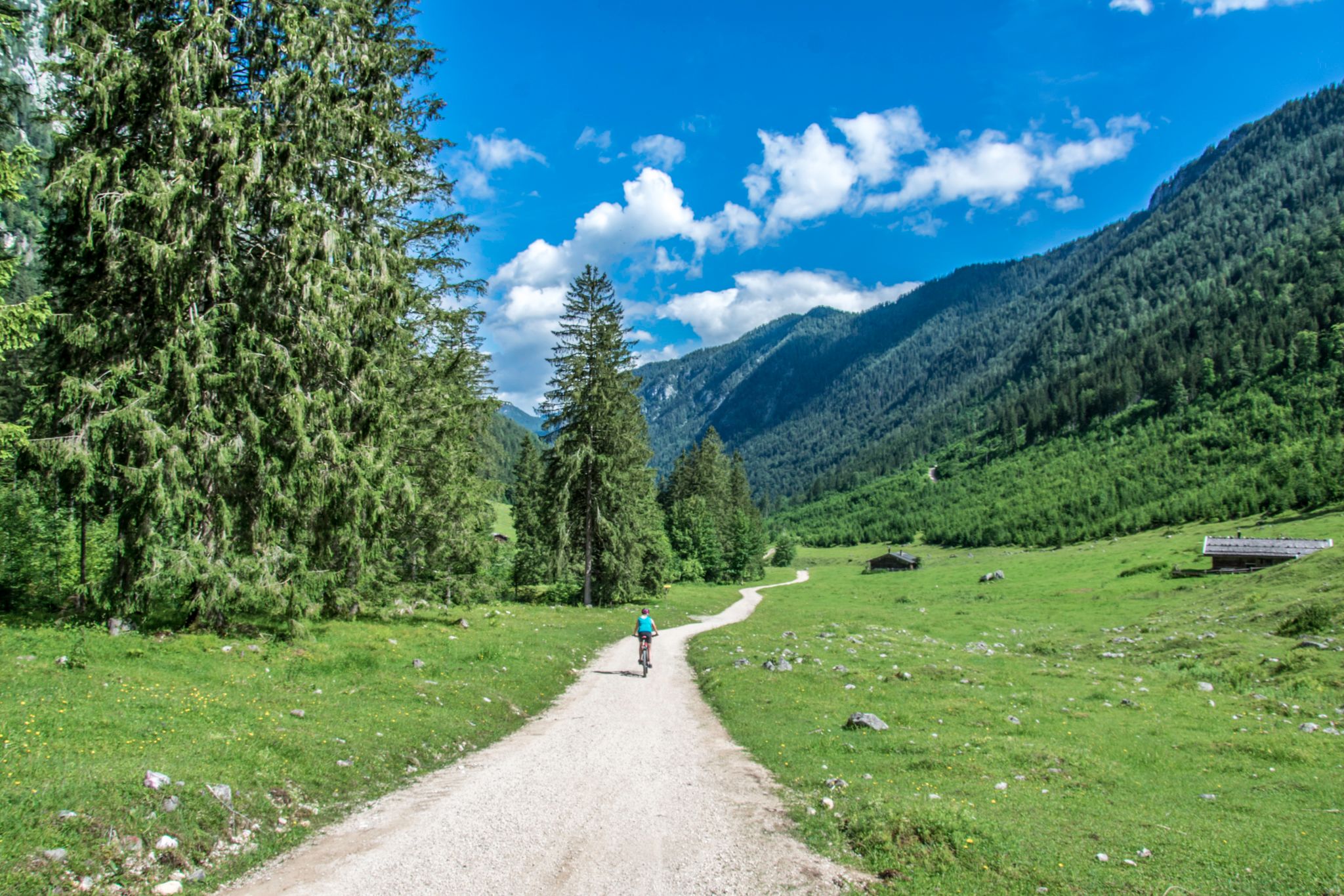 Die Mountainbike-Tour Rund um die Reiter Alm führt vom Bergsteigerdorf Ramsau ins Salzburger Saalachtal und über den Hirschbichl-Pass zurück zum Hintersee.