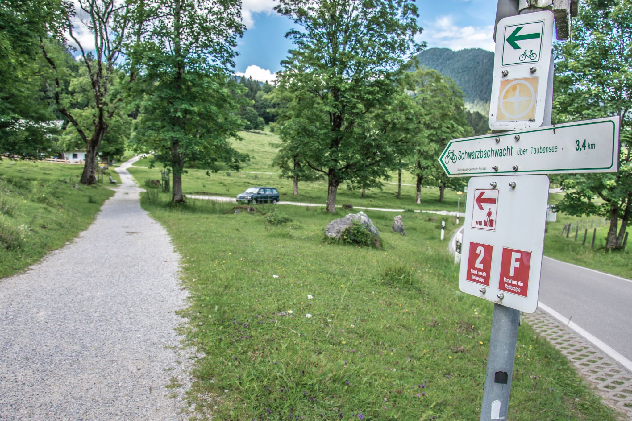 Auf für diese Rundtour ist der Parkplatz am Hintersee unser Ausgangspunkt. Jetzt geht's rauf zum Taubensee und weiter zur Schwarzbachalm. Danach radeln wir durch das Saalachtal mit seiner vielfältigen Bergwelt. Ein langer Anstieg durch das Wildental bringt uns hoch zum Hirschbichl. Der Rückweg führt uns durch das Klausbachtal im Nationalpark Berchtesgaden zum Ausgangspunkt.