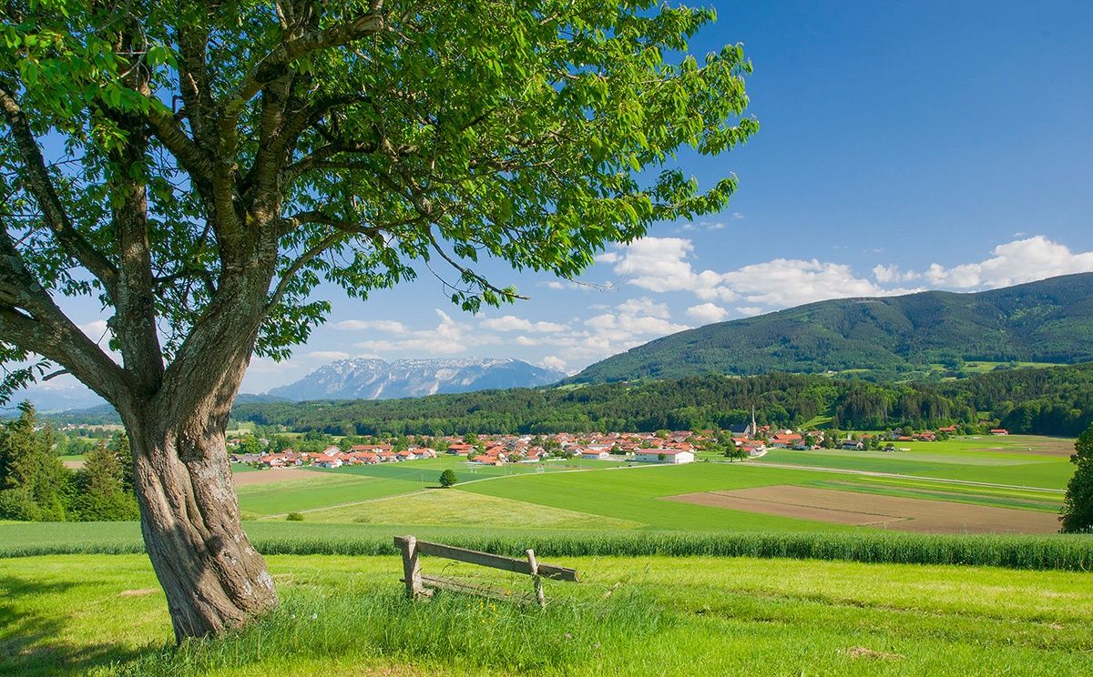 Kirche St. Georg Oberteisendorf bachabwärts auf dem Achenweg zur B 304; dort links über die Steinbrücke, am anderen Ufer der Ache wieder rechts ortsauswärts; beim Transformator nach links durch die Siedlung, auf ruhigem Wiesenpfad über die Sur nach Lohstampf (Blockbau mit Giebelbundwerk aus dem 17./18. Jahrhundert); weiter nach Westen, nach 200 m rechts dem Fahrweg nach Knappen folgend, über Oberwiesen zur Teerstraße; direkt an der Einmündung Kapelle mit Walmdach aus dem 18. Jahrhundert, nun 800 m auf dieser Teerstraße. Kurz nach der Straßenkreuzung, in der Senke, links in den Wald, gleich aber rechts ansteigend in 5 Min. an den Waldrand; rechts 300 m dem Buschwerk entlang, dann nach Süden, auf Feldwegen nach Vorderkapell (Blockbau 18. Jahrhundert; gut erhaltener Backofen vor dem Anwesen); weiter nach Westen auf die Teerstraße nach Oberteisendorf; auf dieser 300 m nach links, dann rechts abbiegend nach Mühwalten (schönes Bauernhaus aus dem 18. Jahrhundert); hangabwärts wandernd (herrliche Aussicht auf die Berchtesgadener und Salzburger Alpen), über Wiesen zum Gasthaus Wagneröd (mit seinen berühmten Dampfnudeln); weiter nach Süden, über die B 304, nach Wank (Bauernhaus in Blockbauweise 18. Jahrhundert, alter Stadl aus dem 17. Jahrhundert); von dort nach links durch Wald und Wiesen zurück zum Ausgangspunkt.