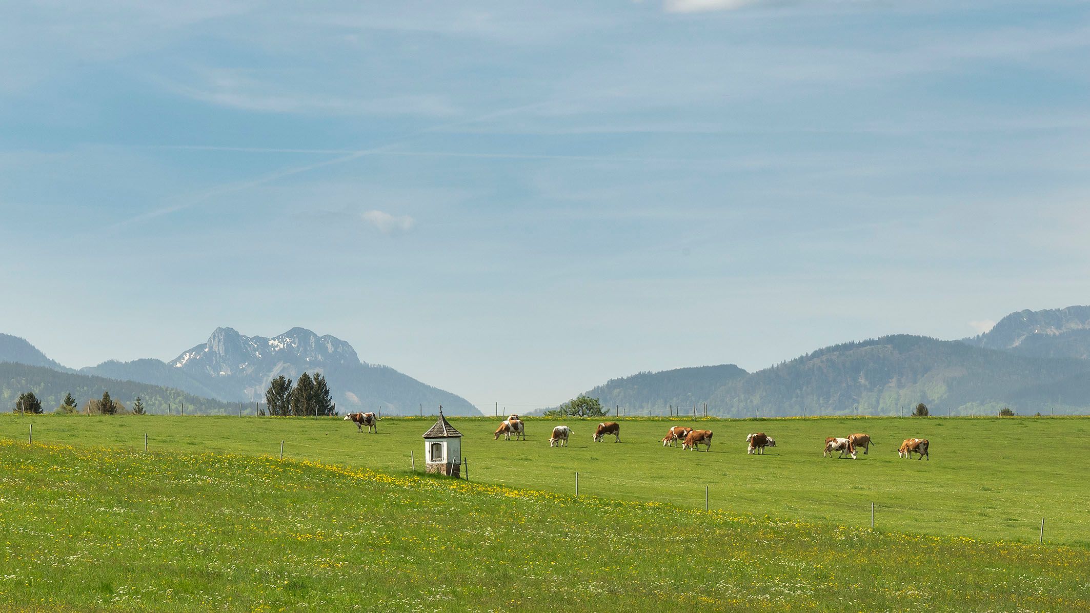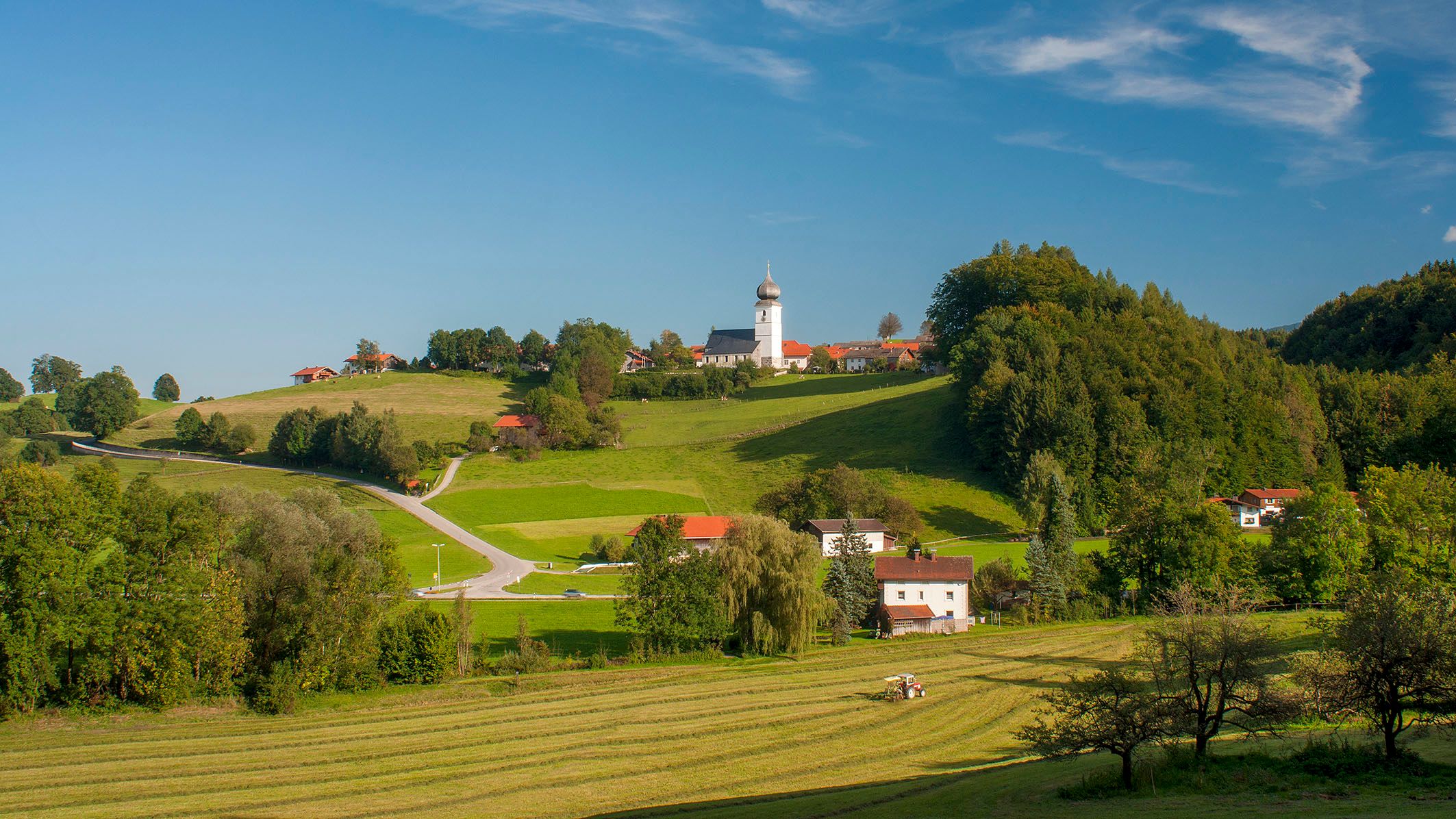 Entdeckt den Rupertiwinkel auf dem Milchstraßen-Radweg von Teisendorf: malerische Dörfer und Landschaften, sanfte Hügel und kleine Weiler