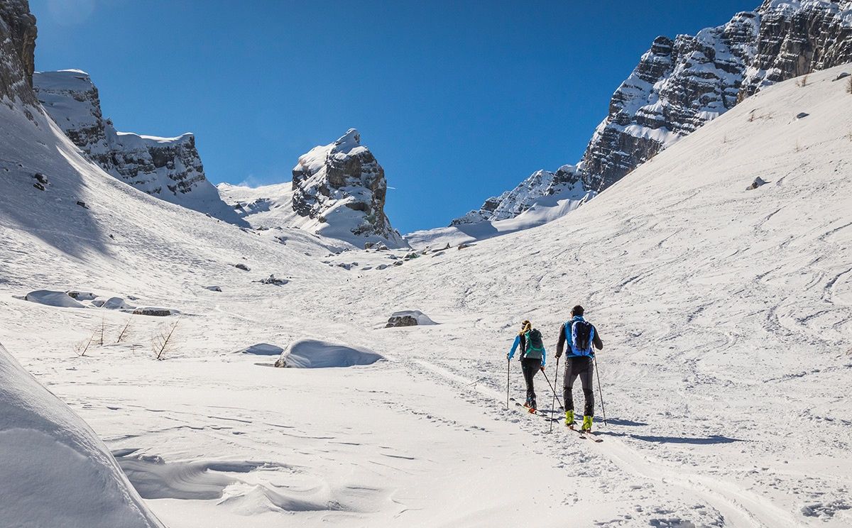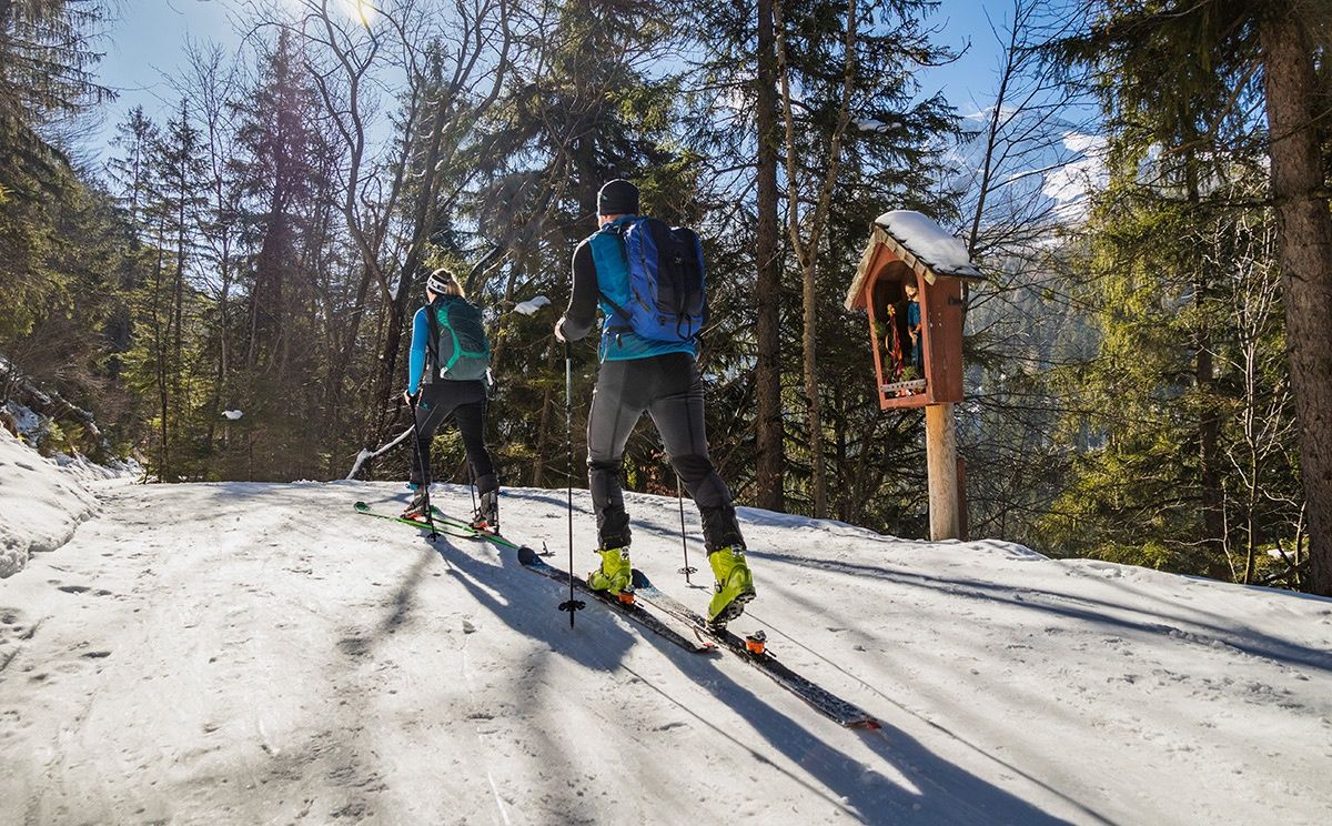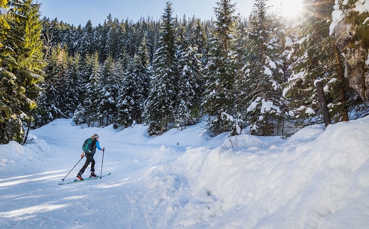 Von der Wimbachbrücke auf der breiten Forststraße oder vom Parkplatz Hammerstiel auf dem Wanderweg zum Standort der ehemaligen Schapbach-Diensthütte. Hier vereinigen sich die beiden Anstiege der Skitour. Weiter geht es auf der Forst-Straße nach Kühroint an der Schapbachalm vorbei bis zur Benzinkurve auf etwa 1.200 m. Im Frühjahr muß man meist die Ski bis hierher tragen (eine gute Stunde). Ist die Straße komplett aper, könnte man für diese Strecke auch das Mountainbike benutzen.