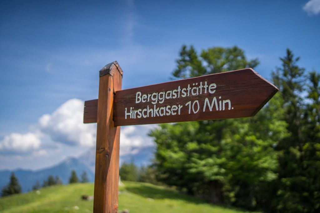 Der beschilderte Weg führt vom Bahnhof Bischofswiesen nach Loipl und vorbei an den Götschenliften. Danach südwärts ansteigend zum Toten Mann. Wenige Meter nach dem Gipfel erreichen wir die Bergstation der Hirscheck-Sesselbahn, neben welcher der Hirschkaser mit seiner breiten Aussichtsplattform liegt. Von hier haben wir das gesamte Panorama der Berchtesgadener Alpen vor uns. Zurück geht's auf dem gleichen Weg.