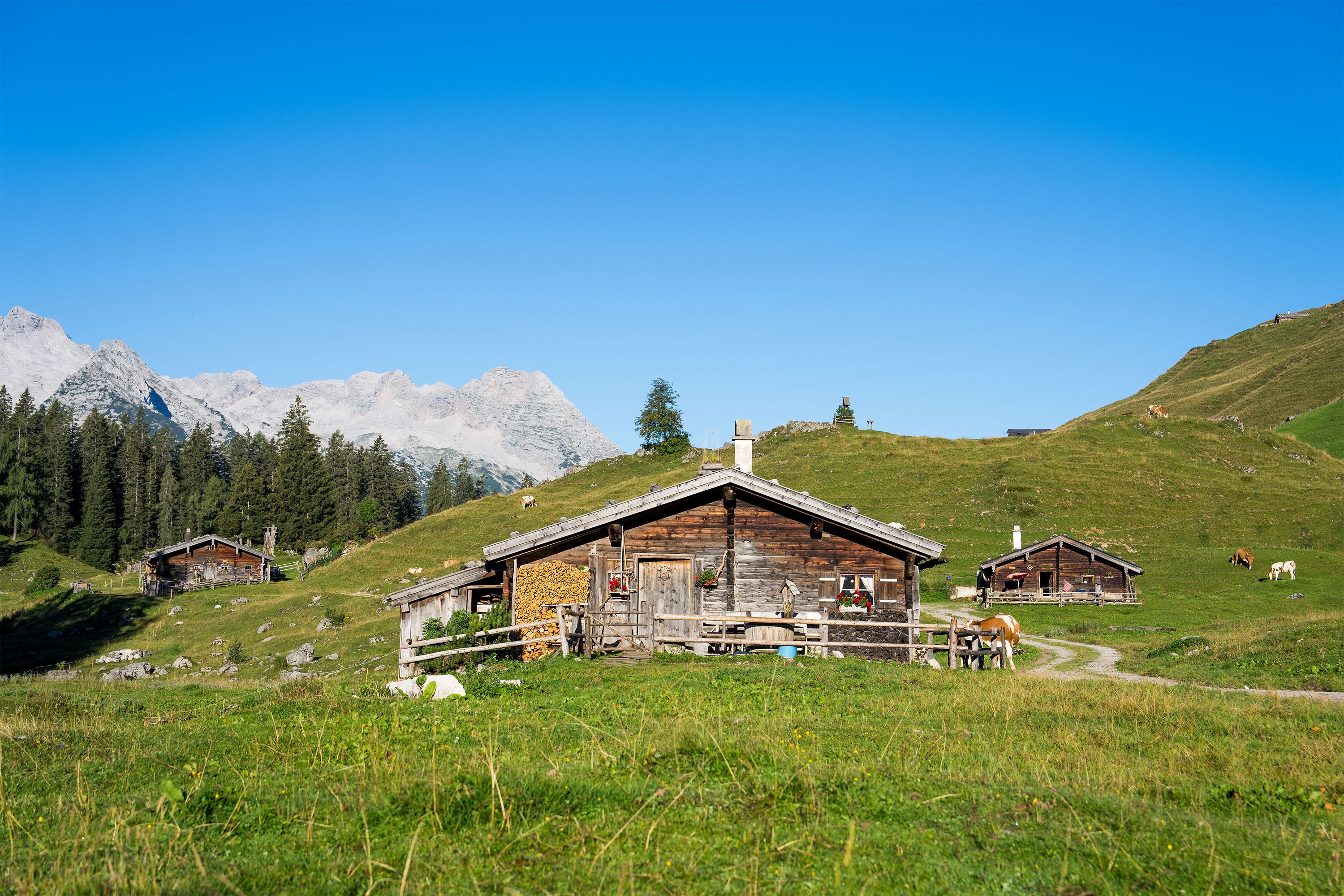 Zurück an der Kreuzung erreicht man die gemütliche Jausenstation Kallbrunnalm, wo hausgemachter Käse, frische Milch und deftige Brotzeiten auf die Wanderer warten – ein perfekter Ort für eine Rast mit Panoramablick.