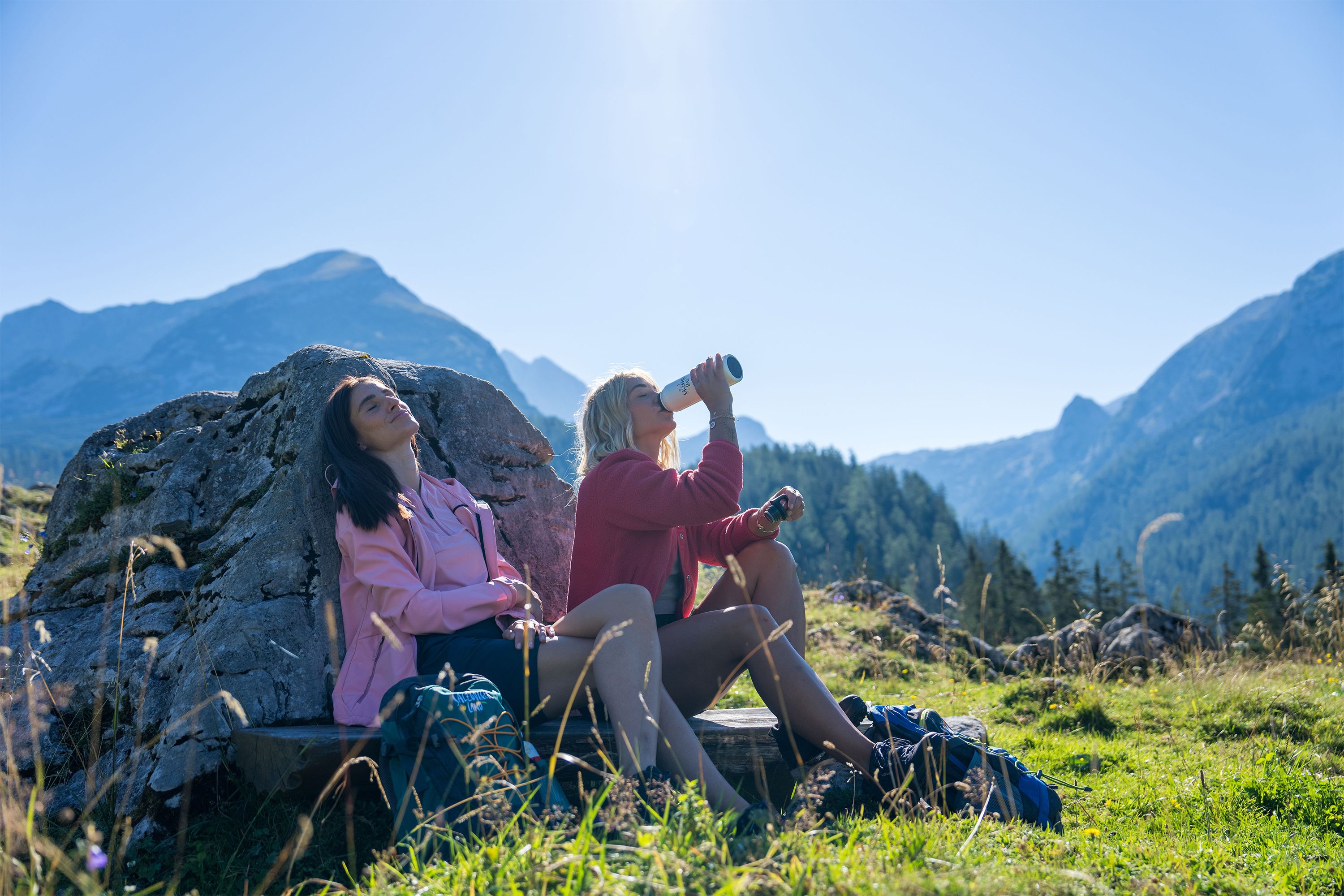 Der Rückweg kann auf gleichem Weg erfolgen oder über die Forststraße hinunter zur geteerten Hintertalstraße und der Bushaltestelle (H) Abzweigung Kallbrunnalm, wo wieder der Almerlebnisbus zurück nach Ramsau wartet.