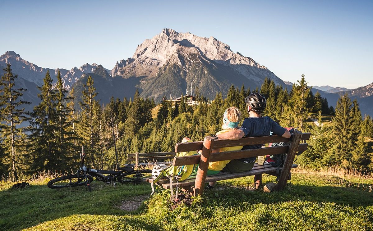 Nach der Auffahrt mit der Hirscheckbahn führt der Weg zuerst zur Bezoldhütte auf dem Toten Mann, dann in vielen kurzen Serpentinen über den bewaldeten Rücken des Brettriedels und den Mitterbergsteig hinab zum Söldenköpfl.