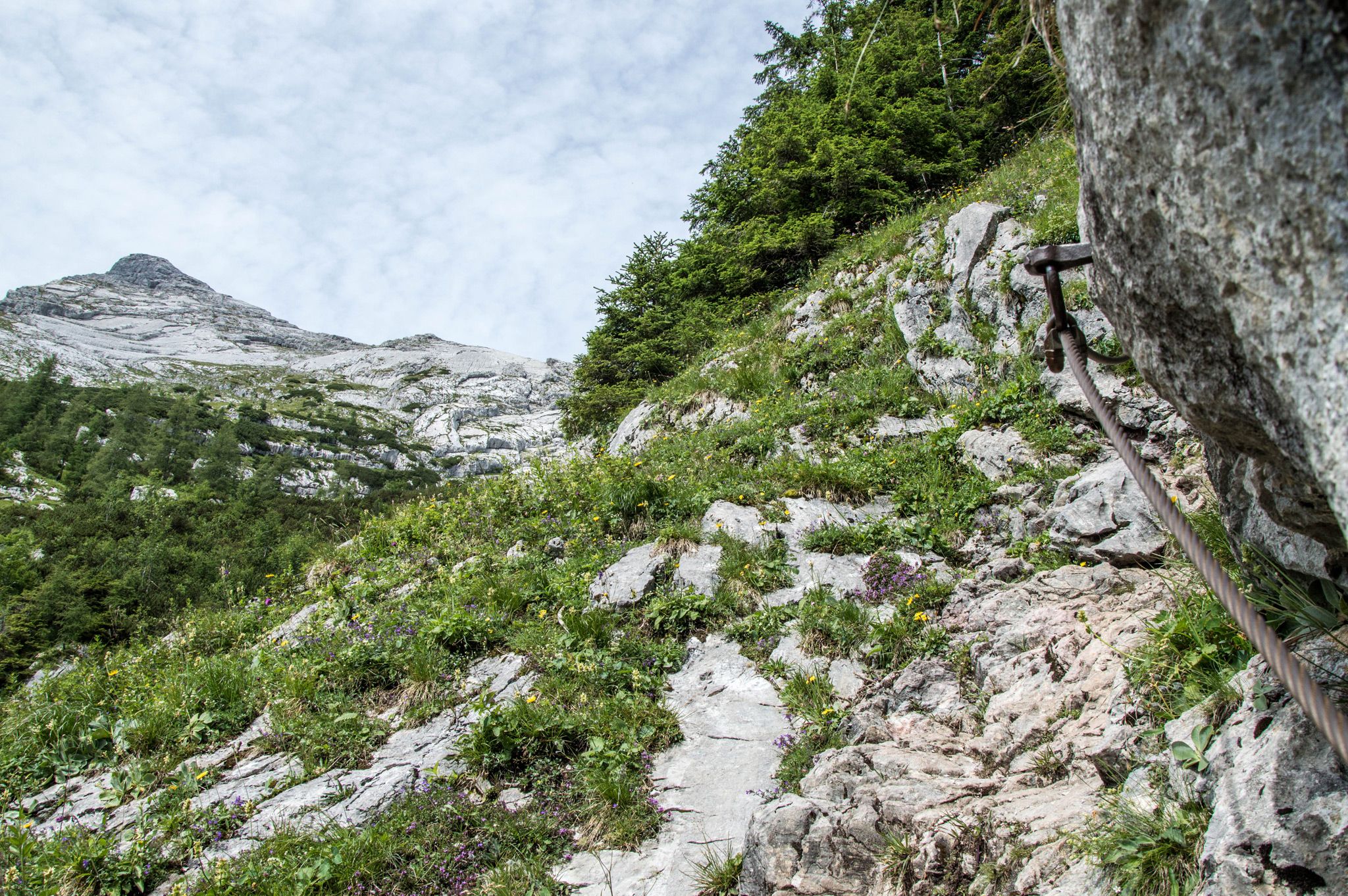 Vom St. Bartholomä führt der Weg erst flach am Ufer des Königssees entlang in den Wald. Hier ändert sich die Wegbeschaffenheit, das Gelände wird steiler, der Weg schmäler. Einige ausgesetzte, absturzgefährdete Passagen und gesichtere Stufen bzw Treppen im Rinnkendlsteig bringen uns hinauf bis auf etwa 1.400 Meter Höhe. Der Absteher zur Archenkanzel ist obligatorisch.