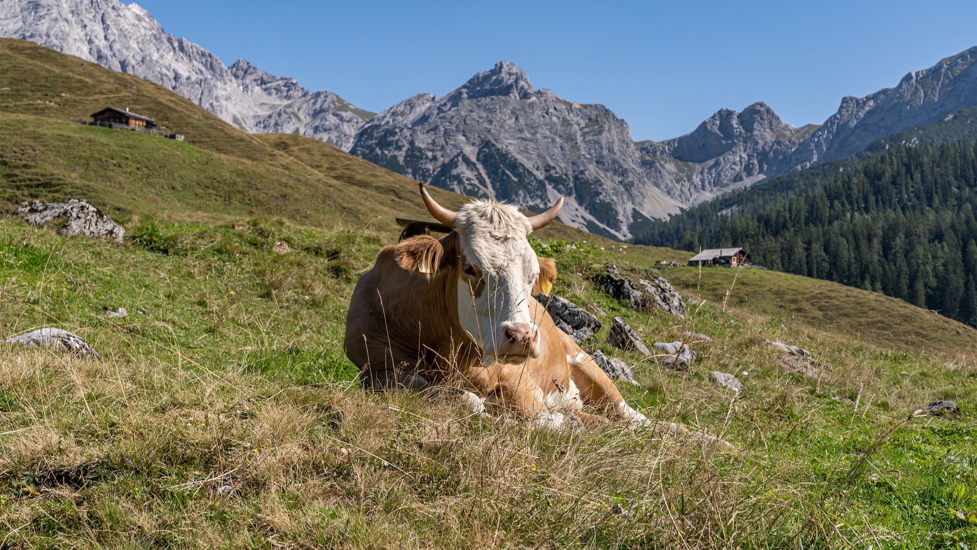 Die Kallbrunnalm liegt auf einer Höhe von 1400 bis 1600 m, wurde erstmals 1385 urkundlich erwähnt und gehörte ursprünglich zum Stift Berchtesgaden. In den Sommermonaten werden rund 350 Stück Vieh von 30 Bauern aufgetrieben. Wir folgen der Nr. 401 durch die Rechtskurve, wenden uns an der Gabelung links, um am Waldrand links abzubiegen. Nach etwa 1 km erreicht man die Staumauer des Dießbach-Stausees, der herrlich vom Seehorn zur Linken und vom Praghorn zur Rechten flankiert wird. Wir wandern zurück durch den Wald, ignorieren den ersten Abzweig direkt am Waldrand und halten uns dann links, um auf dem Weg Nr. 411 zur Jausenstation Kallbrunnalm in 1454 m Höhe zu gelangen. In der Alm wird gute Hausmannskost in urigem Ambiente serviert oder man genießt die Aussicht auf Kammerlinghorn und Seehorn im Nordosten sowie die Leoganger Steinberge im Südwesten.