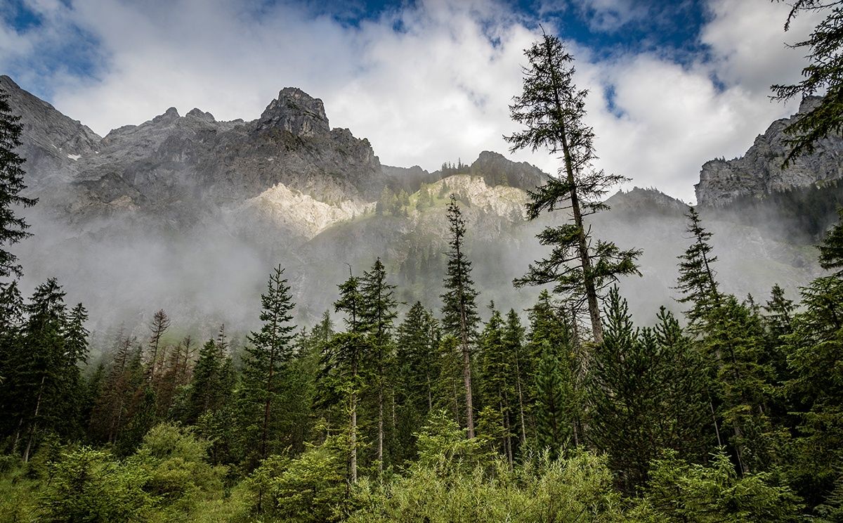 Das Wimbachtal bietet uns ein unvergleichliches Naturerlebnis. Während sich das Paralleltal mit dem Königssee füllte, entstand hier ein imposanter Schuttstrom. Die Dolomitgesteine des Watzmann- und Hochkaltermassivs verwittern zum sogenannten Gries, das sind Gesteinsbruchstücke, die in einer mächtigen Schicht den Talboden bedecken. Wie eine schiefe Ebene liegt das Gries zwischen den begrenzenden Felswänden. Bei Schneeschmelze und Starkregen bilden sich an der Oberfläche Wasserläufe, die das Gestein langsam ins Tal befördern. An den Ufern beginnen Pionierpflanzen den Lebensraum zu erobern, jedoch meist nur vorübergehend. Nachdem wir die sehenswerte Klamm am Taleingang passiert haben, führt der Weg nun mäßig steil, aber kontinuierlich ansteigend vorbei am Wimbachschloß, ehemals ein Jagdschloss der bayerischen Könige, zur Wimbachgrieshütte. Insgesamt sind bei dieser Wanderung 700 Höhenmeter auf breiten Schotterwegen zu bewältigen.