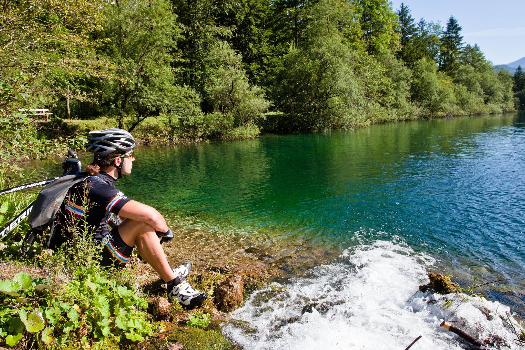 Wer genug Schmalz in den Waden besitzt, kann diese direkte, aber umso anstrengendere Variante über das Bluntautal und das Carl-von-Stahl-Haus wählen. Die letzten 330 Höhenmeter von der Oberen Jochalm hinauf sind allerdings eine Schiebe- bzw. Tragestrecke! Anstrengend, doch die Belohnung folgt auf der Sonnenterrasse des Stahl-Hauses mit dem Ausblick auf den imposanten Watzmann. Nach steiler Abfahrt geht’s oberhalb des Königssees entlang, bis wir wieder auf die Hauptroute treffen.