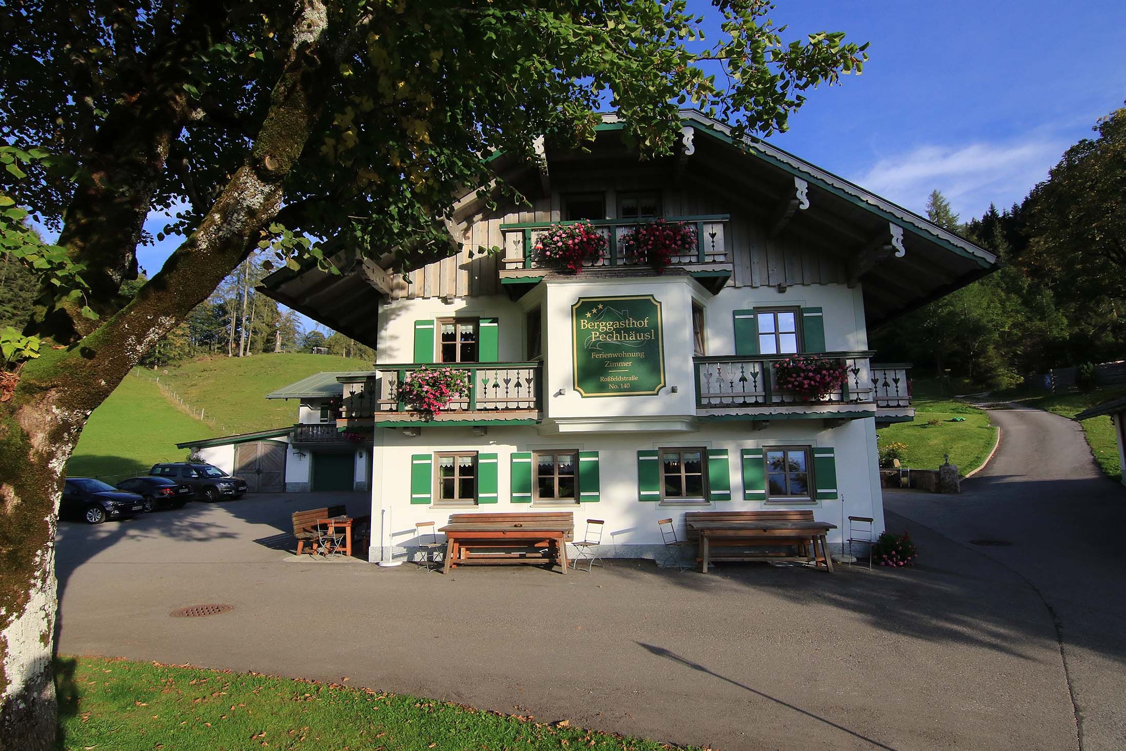 Unser Berggasthof Pechhäusl liegt inmitten der Berchtesgadener Bergwelt auf 1.100 Metern Höhe in Alleinlage. Seit mehreren Generationen ist der ehemalige Hof mit den wunderschönen weiten Wiesen und dem nahegelegenen Wald im Besitz unserer Familie. In unserer Pension mit Zimmern und Ferienwohnungen können Sie einen traumhaften Urlaub verbringen. Für besonders erholsame Nächte, haben wir einige unserer Einheiten mit Zirbenbetten ausgestattet. Jede Einheit ist ganz individuell, gemütlich und liebevoll eingerichtet. Abends kochen wir in unserem Restaurant für Sie frisch und regional. Genießen Sie den Sommer in unserem Garten. Die Liegewiese lädt zum Verweilen ein. Die alte Linde schützt vor zu starker Sonneneinstrahlung in unserem Biergarten. Zu zahlreichen Wanderungen können Sie direkt vom Haus aufbrechen. Im Winter können Sie direkt von der Terrasse auf die Skipiste des Skigebiets Rossfeld starten. Die Ausflugsziele Berchtesgadens sind mit Auto und Bus gut zu erreichen.Frühstück von 8.00-10.00 Uhr für Frühaufsteher und Wanderer nach Absprache.