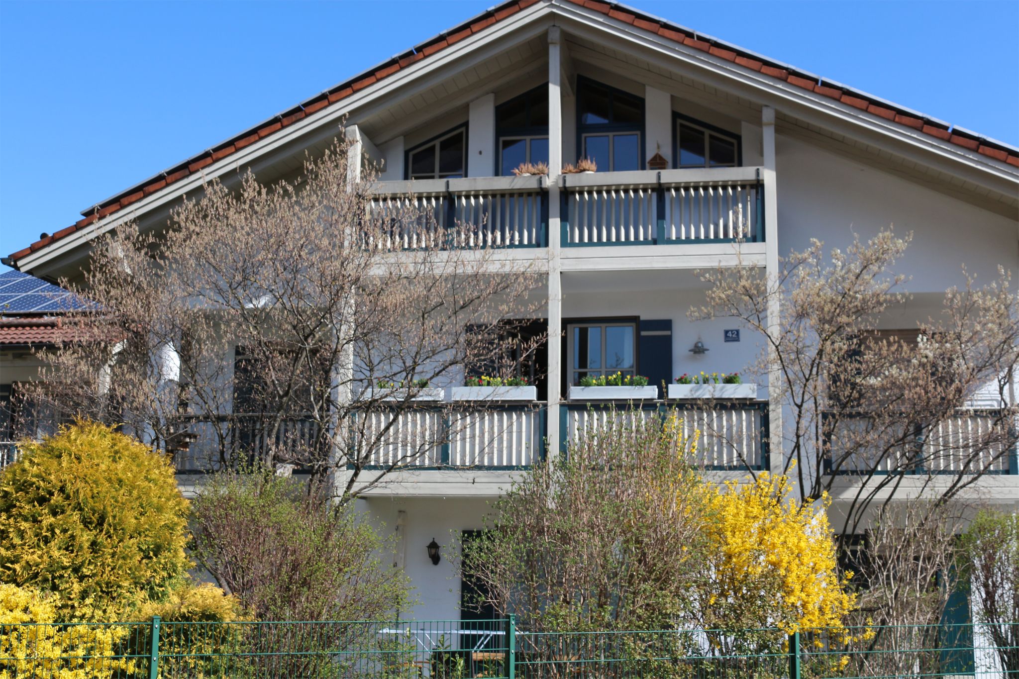 Ein großer sonniger Balkon mit gemütlichen Gartenmöbeln laden zum Essen im Freien mit Berg- und Gartenblick ein. Der Wohn-/Schlafbereich hat einen schwenkbaren Flach TV, kostenloses WLAN und eine Spielekonsole. In der offenen, vollausgestatteten Küche befindet sich neben einer normalen Kaffeemaschine auch ein Kaffeevollautomat von Delonghi, Toaster, Smoothie Maker, Spülmaschine, Mikrowelle, Backofen, Ceranfeld. Neben dem Doppelbett in der Größe 160 x 200 hat der Wohn-/Schlafbereich eine Funktionscouch die man ebenfalls als Doppelbett verwenden kann. Bettwäsche wird von uns gestellt.Das Bad ist mit einer Badewanne mit Regendusche, WC, Fön und Handtücher ausgestattet.Auf Wunsch stellen wir gerne ein Kinderbett und ein Hochstuhl zur Verfügung. Im kleinen Abstellraum neben dem Eingang finden sie ein Bügelbrett, Dampfbügeleisen, Putzzubehör. Im Keller steht Ihnen ein Gemeinschaftswaschraum mit eigener für Sie nutzbaren Waschmaschine zur Verfügung. Ebenso ein absperrbares Kellerabteil mit Stromanschluss für Ihr E-Bike/Räder und sonstige Sportausrüstung. Ihr Auto kann auf dem eigenen Tiefgaragenstellplatz geparkt werden, dazu erhalten sie von uns den automatischen Garagentoröffner.