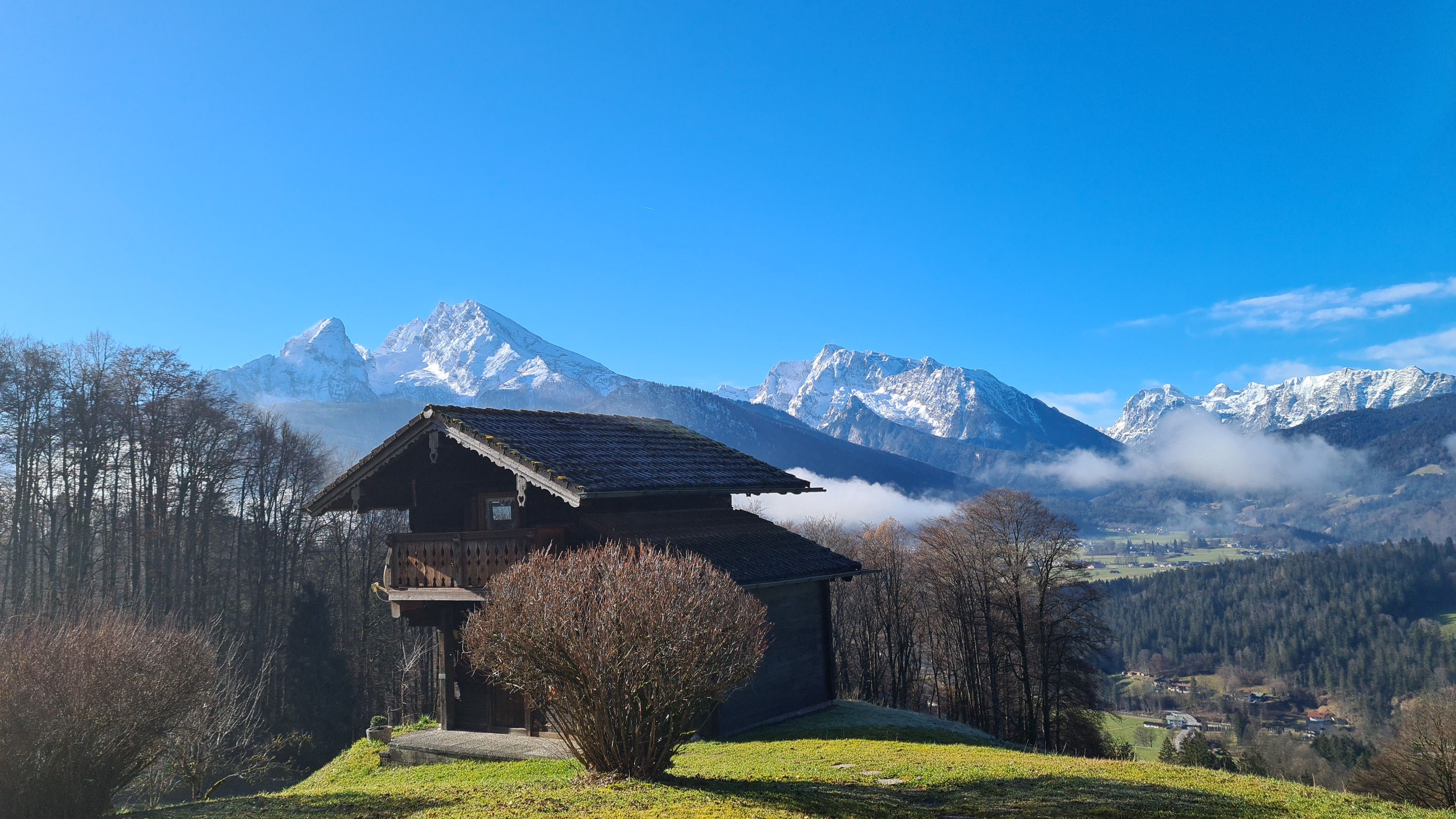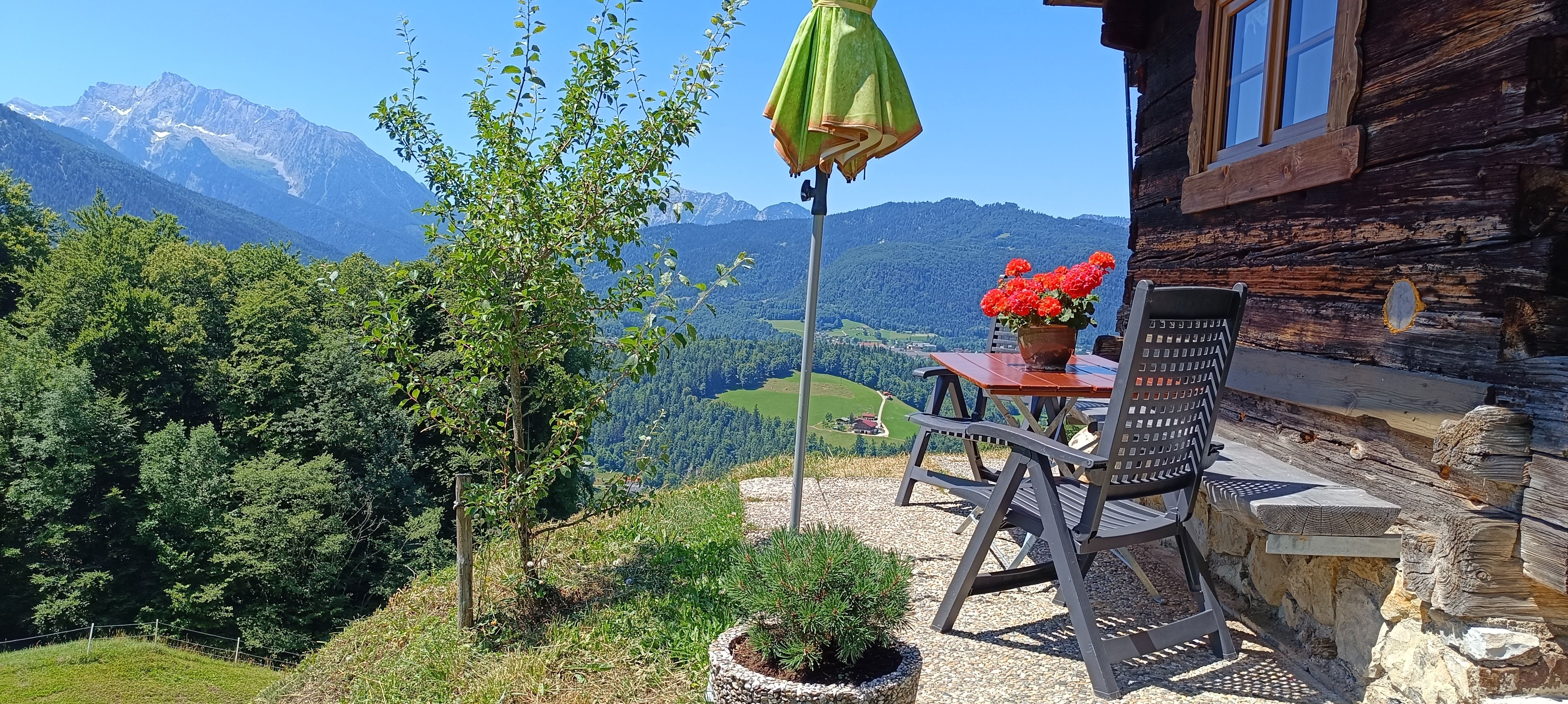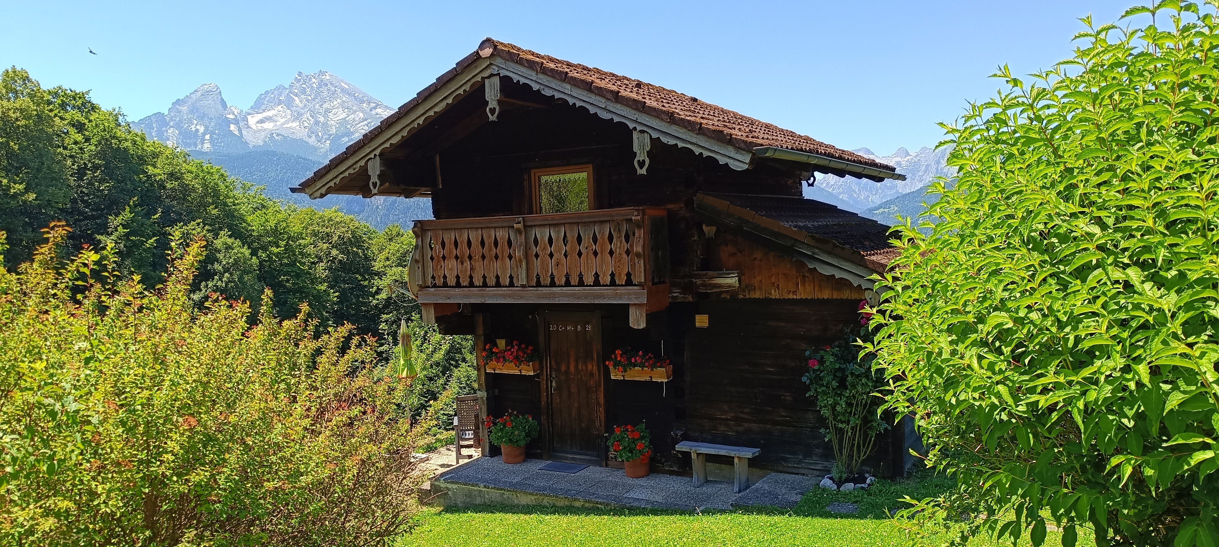 Entdecken Sie das idyllische Ferienhäuschen Sappenlehen auf 800 Meter Höhe mit atemberaubendem Panoramablick auf das Berchtesgadener Tal und seine Berge.