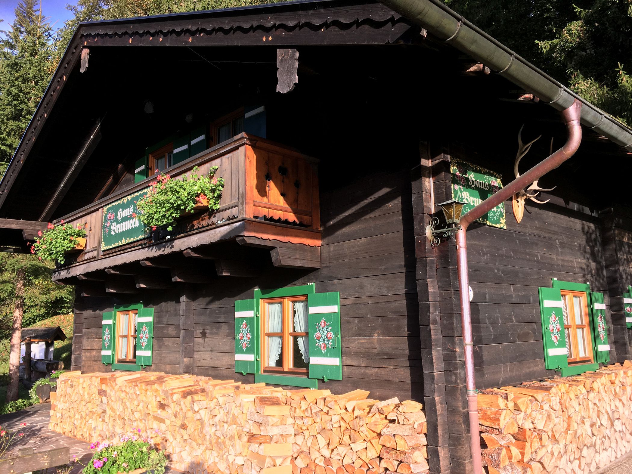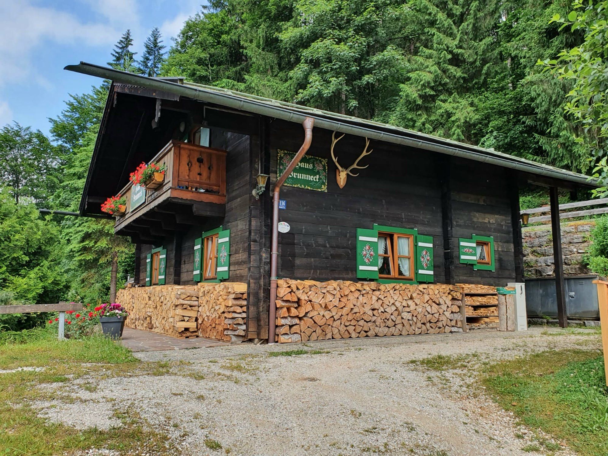 Entdecken Sie das Ferienhaus Brunneck Erna Strube, eingebettet in die Berchtesgadener Alpen, mit komfortablen Wohnungen und einer idyllischen Terrasse.