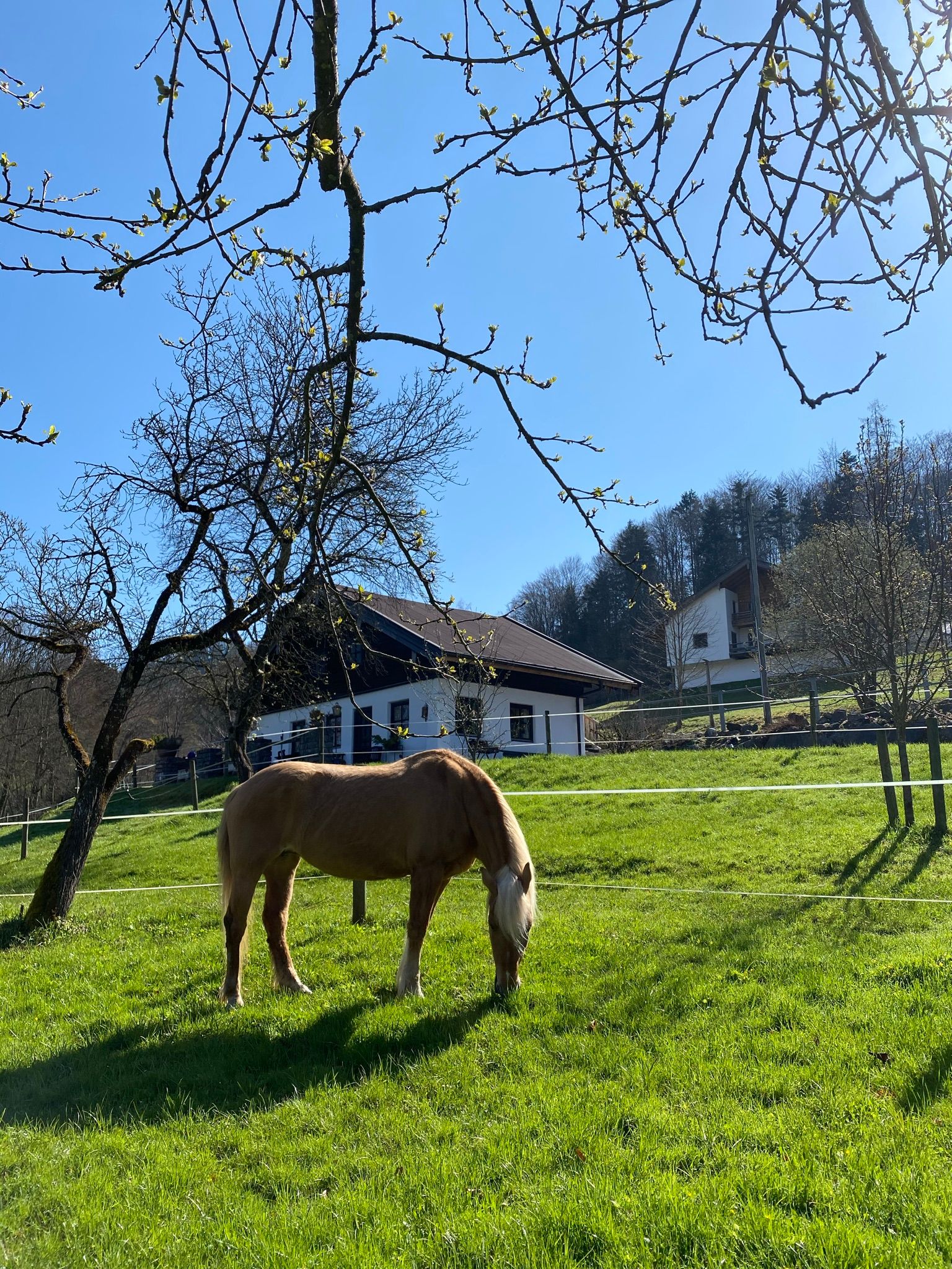 Entdecken Sie das idyllische Ferienhaus Heuberglehen, eingebettet zwischen Pferdekoppeln und einem alten Obstgarten, nahe dem Kurort Marktschellenberg.