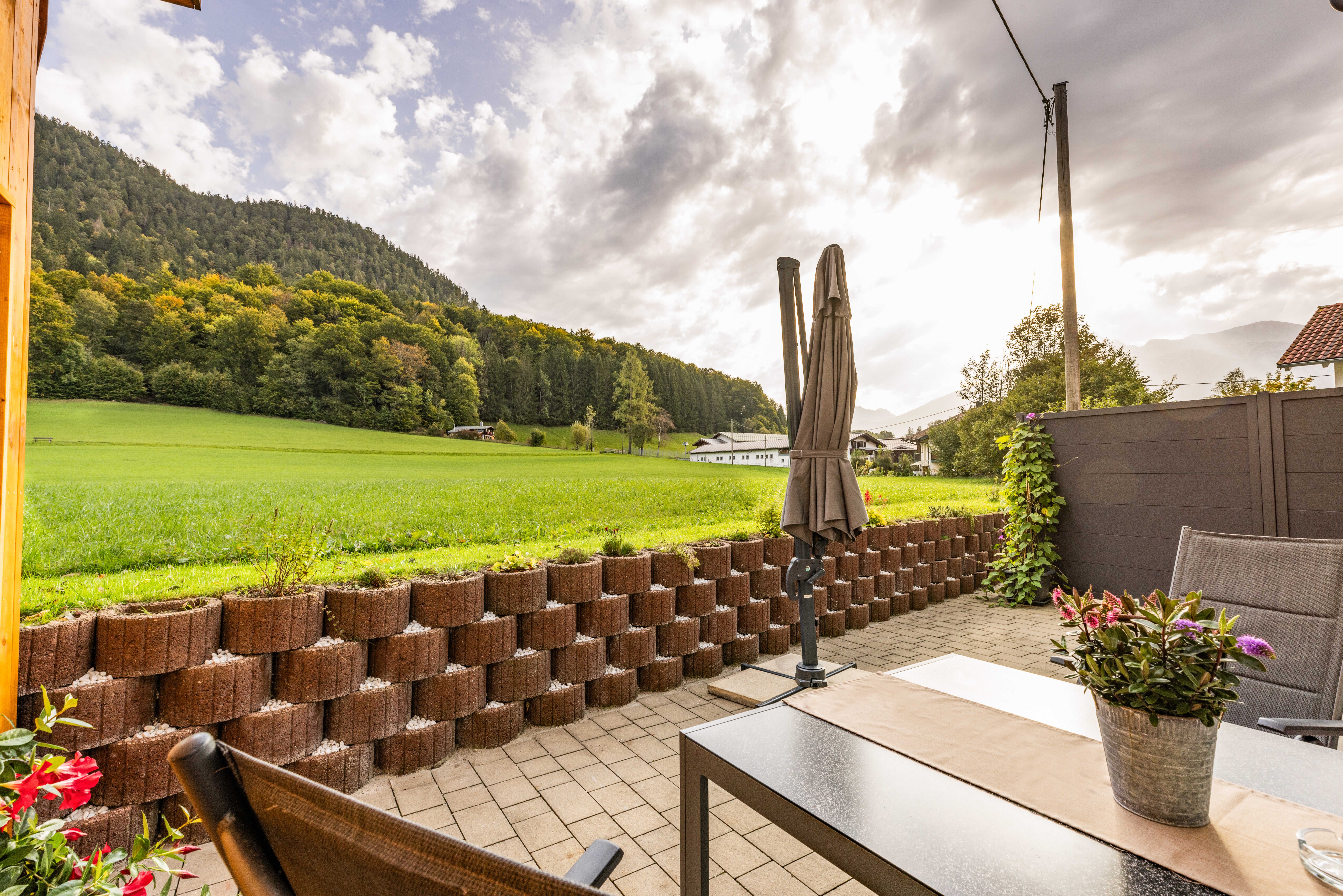 Auf der Terrasse genießen Sie die Ruhe mit einer Sitzgarnitur für 4 Personen.
