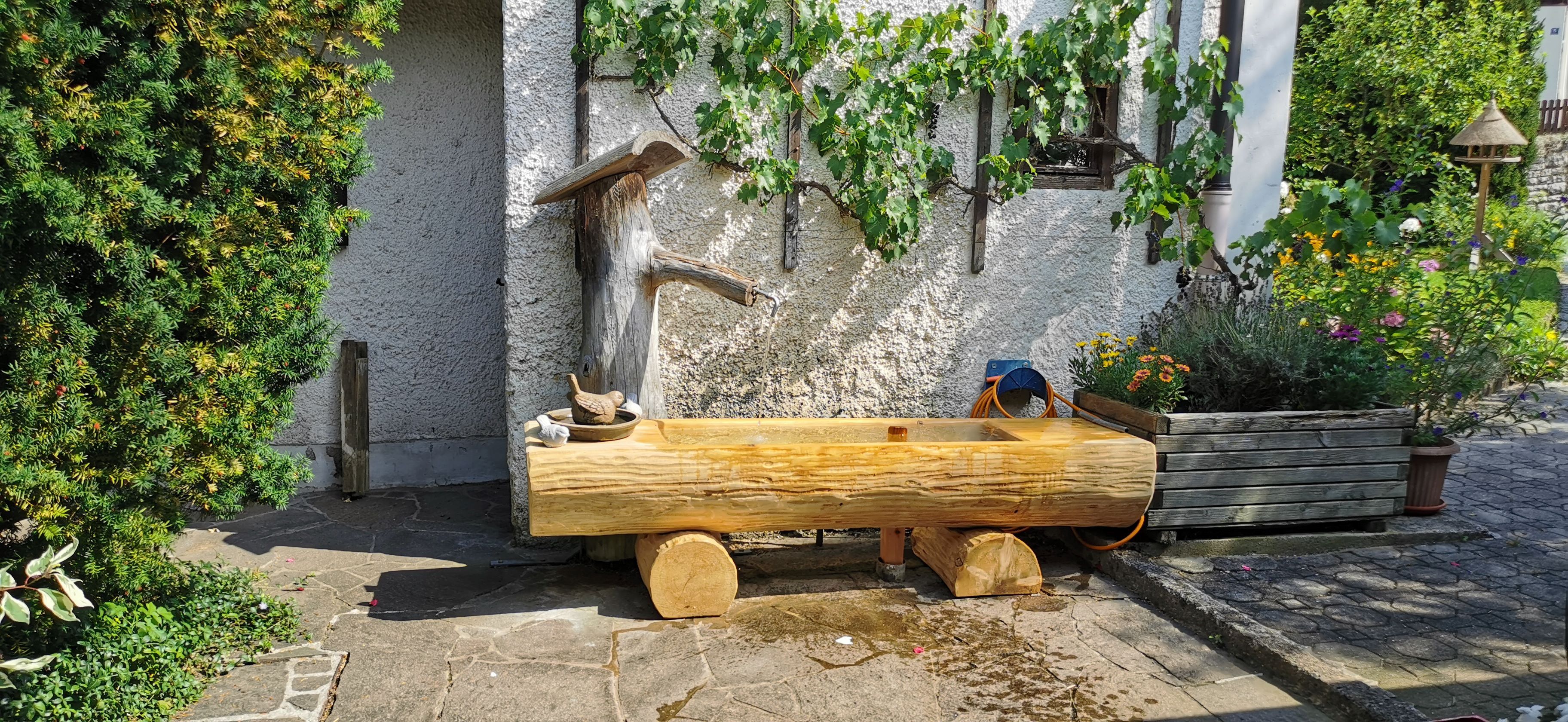 Sonnenschirm, sowie ein Grill zur Verfügung. Die hauseigene Quelle sorgt