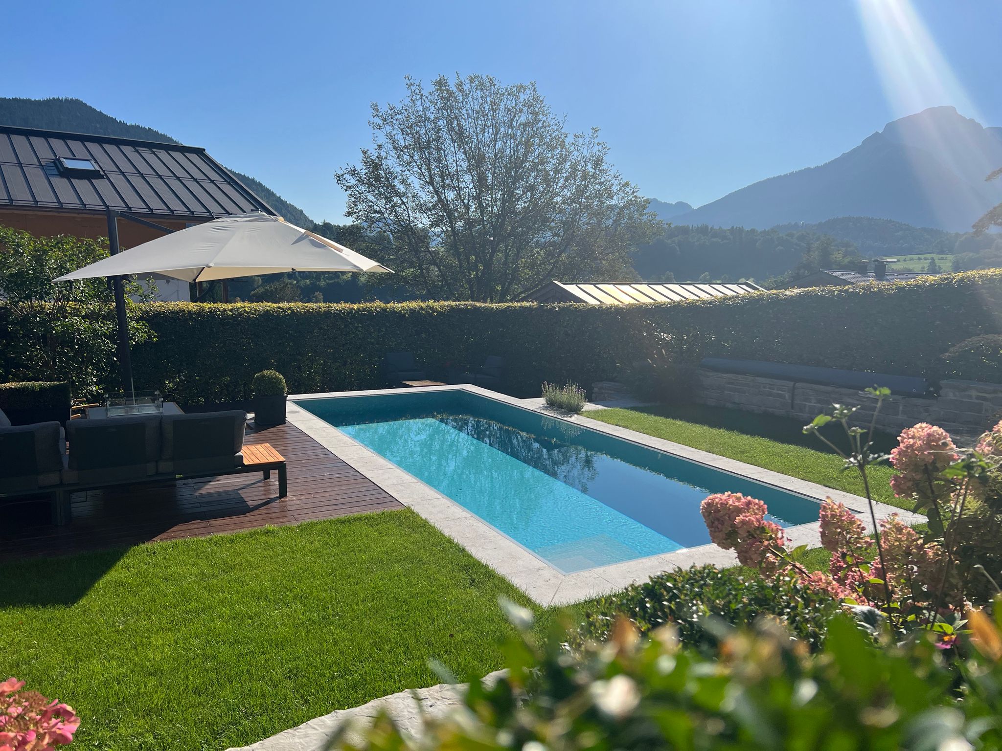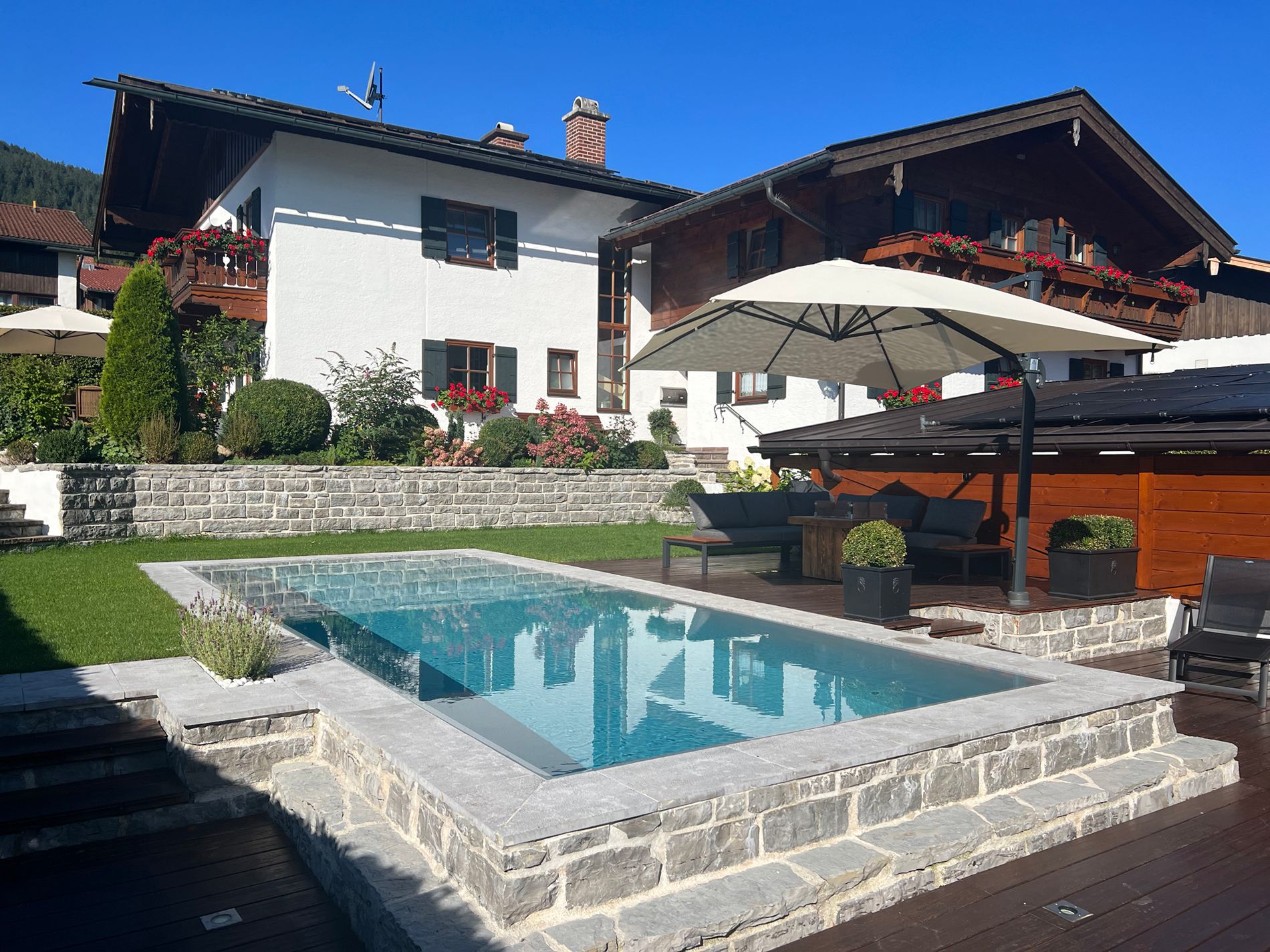 Genießen Sie den wunderbaren Bergblick auf den Kehlstein, Hoher Göll und Hohes Brett vom Balkon unserer liebevoll gestalteten Nichtraucher-Ferienwohnungen mit gehobener Ausstattung.