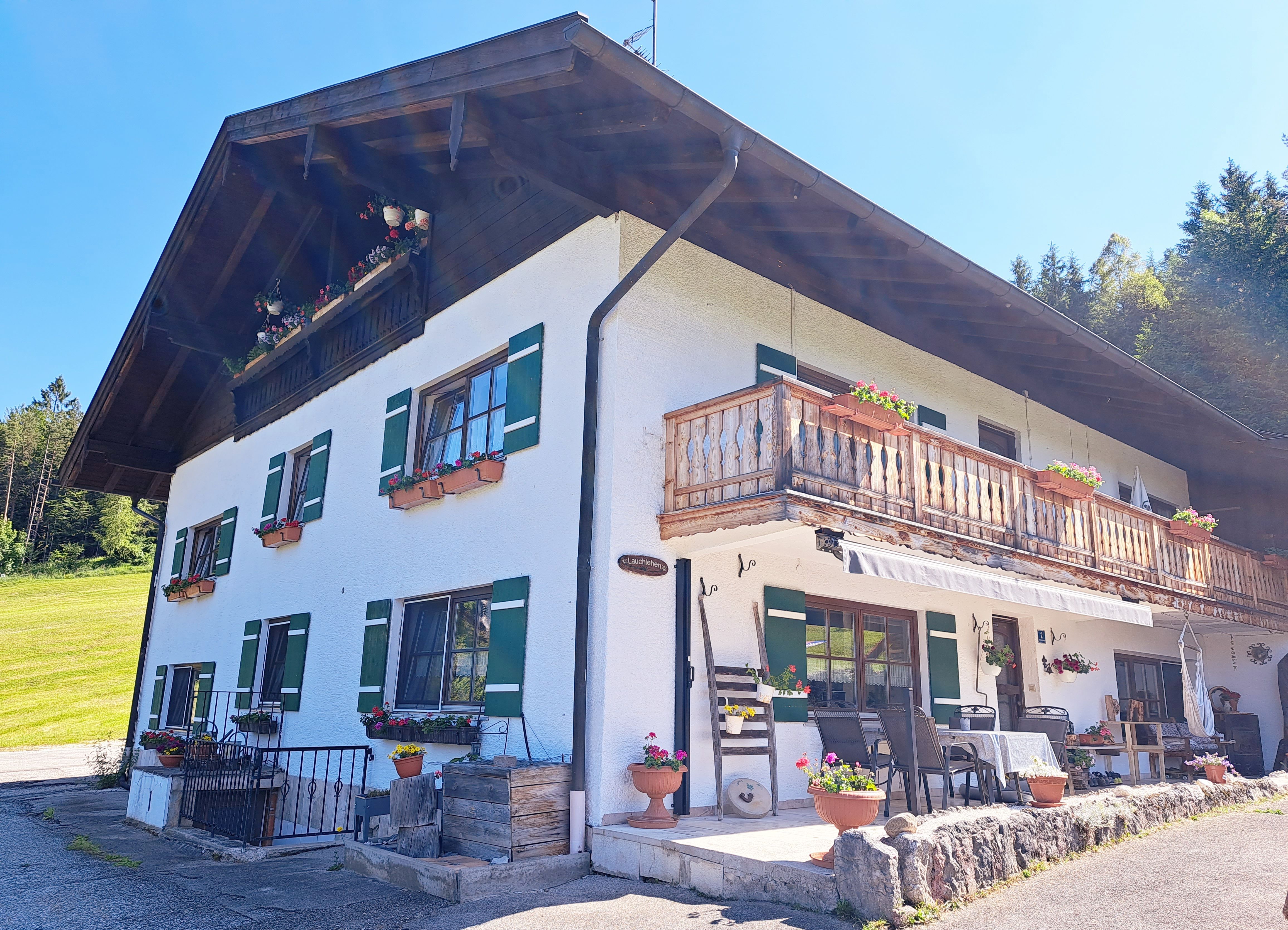 Entdecken Sie die Ferienwohnung 'Lauchlehen', gelegen in sonniger Südlage am Fuße der Kneifelspitze, mit Parkplatz direkt am Haus.